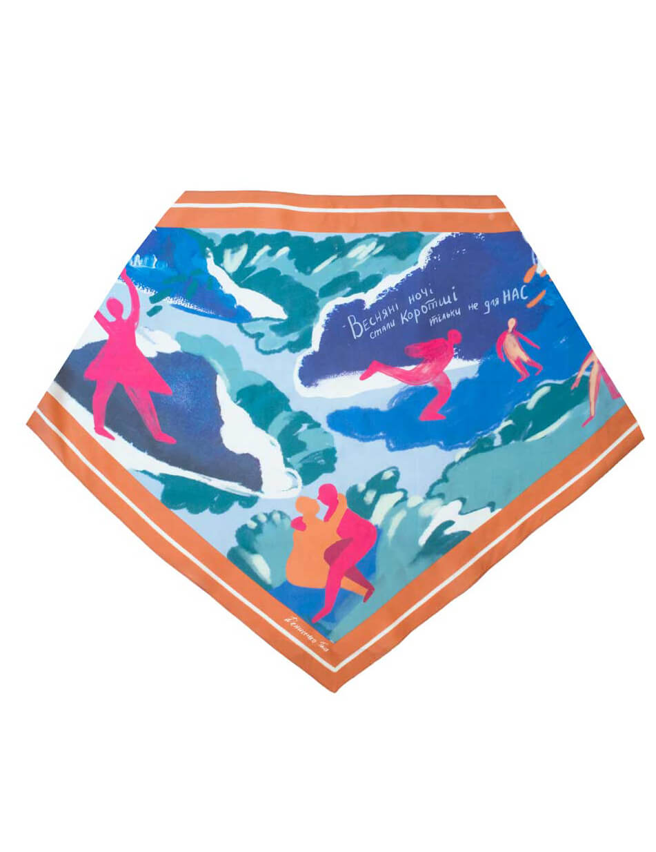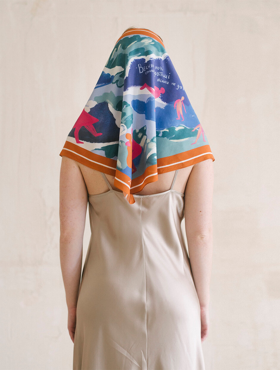 Доставка впродовж 2-5 робочих днівМалюнок платка нагадує музичну пластинку, адже кожен платок розповідає свою історію. Аутентичні українські пісні, знайомі з дитинства, пробуджують найщиріші почуття, нагадуючи про прості, але важливі цінності, які стали основою сюжетів платків. Кожен платок дбайливо виготовлений з TENCEL, що виготовляється з стружки евкаліптового дерева, має антисептичні властивості, тому не викликає подразнень і не електризує волосся. Нам до вподоби, що TENCEL — екологічний матеріал: для його виробництва використовується значно менше води, ніж для виготовлення бавовни, а також він підлягає переробці. Ілюстрації, нанесені на TENCEL за допомогою цифрового друку на сучасному обладнанні, зберігають свої насичені кольори протягом довгого часу.