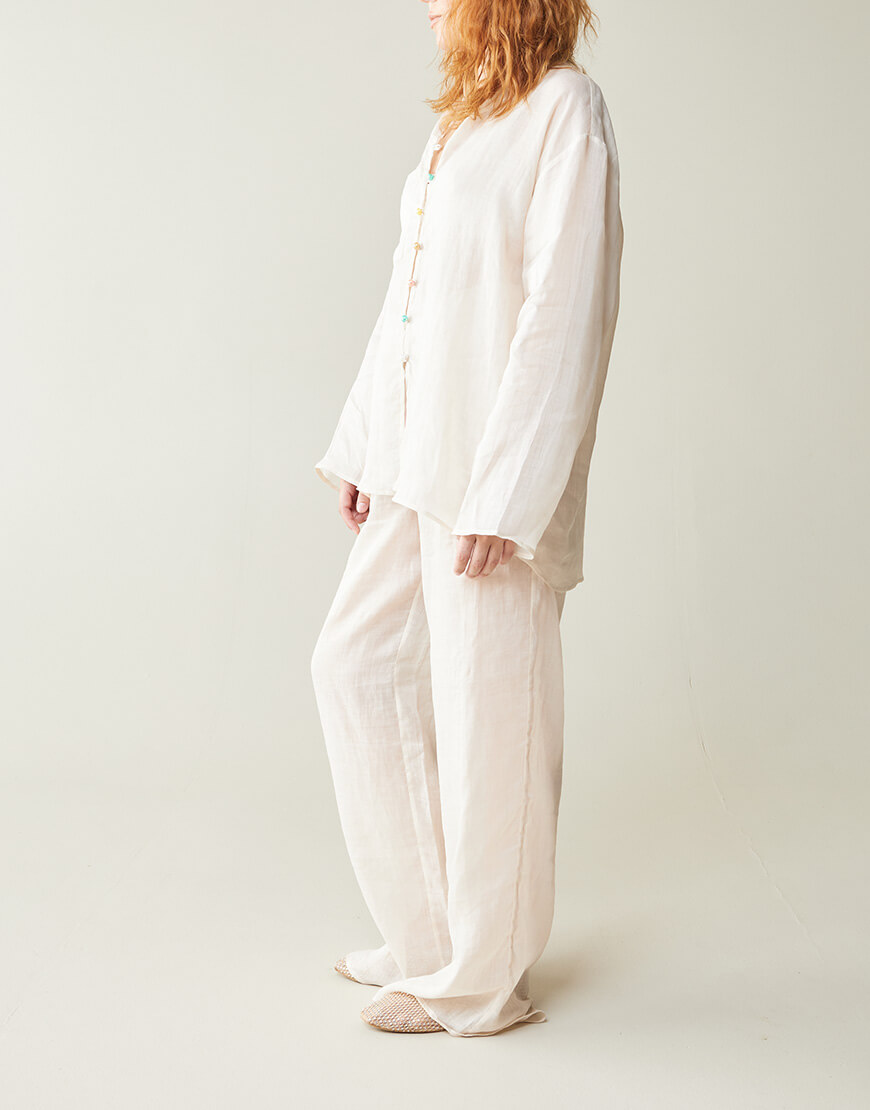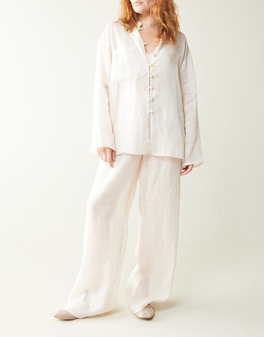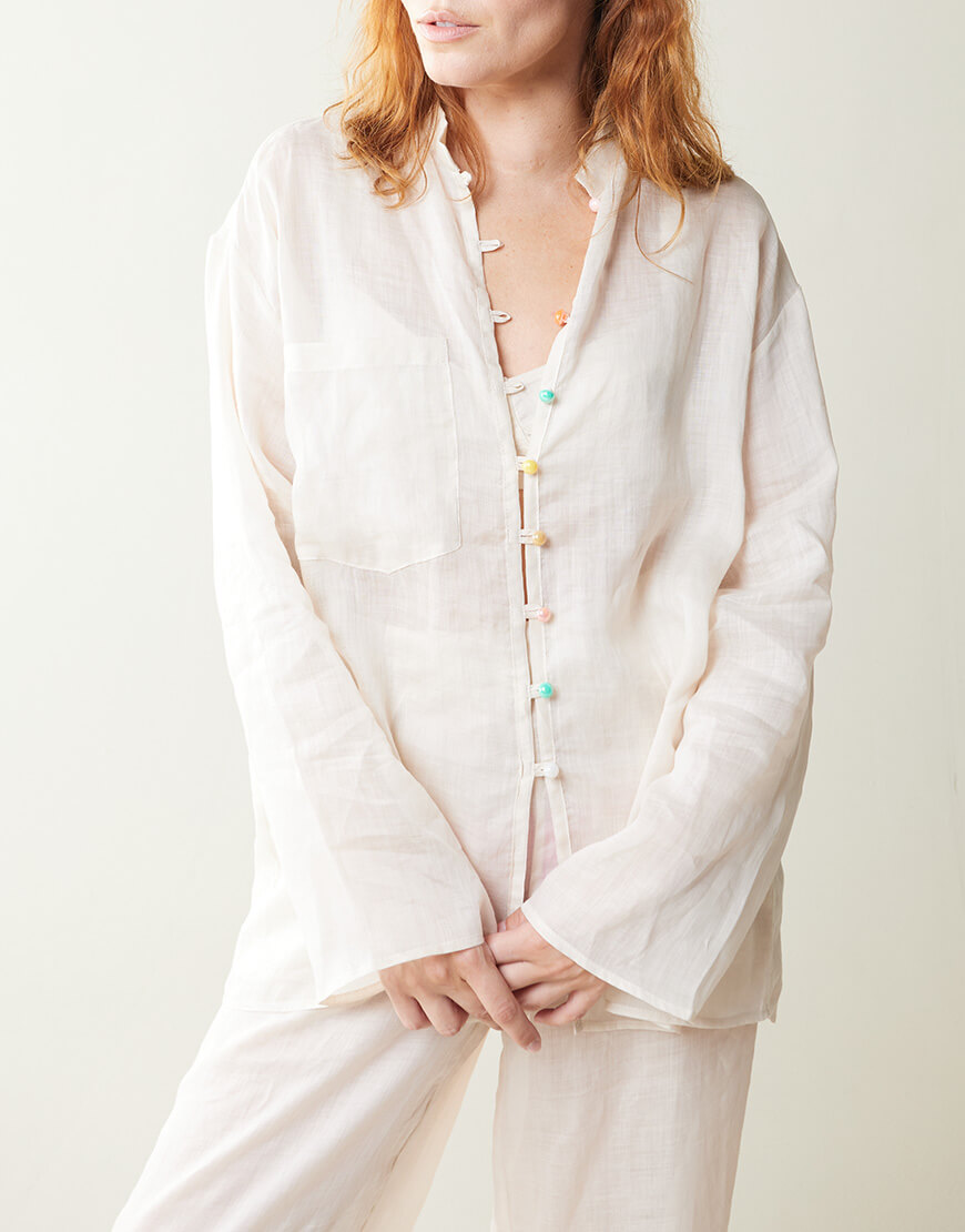 Легка прозора лляна сорочка з кольоровими ґудзиками