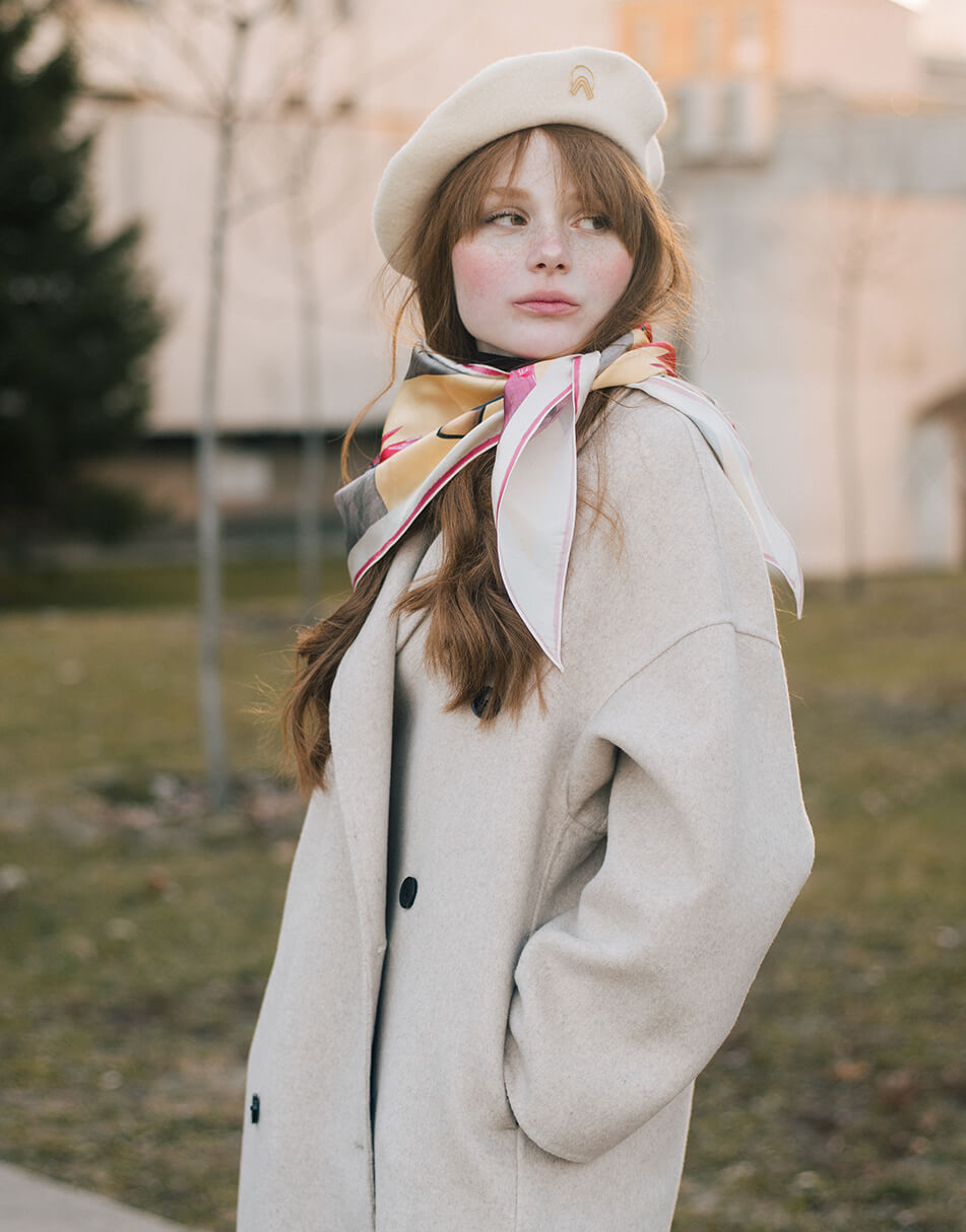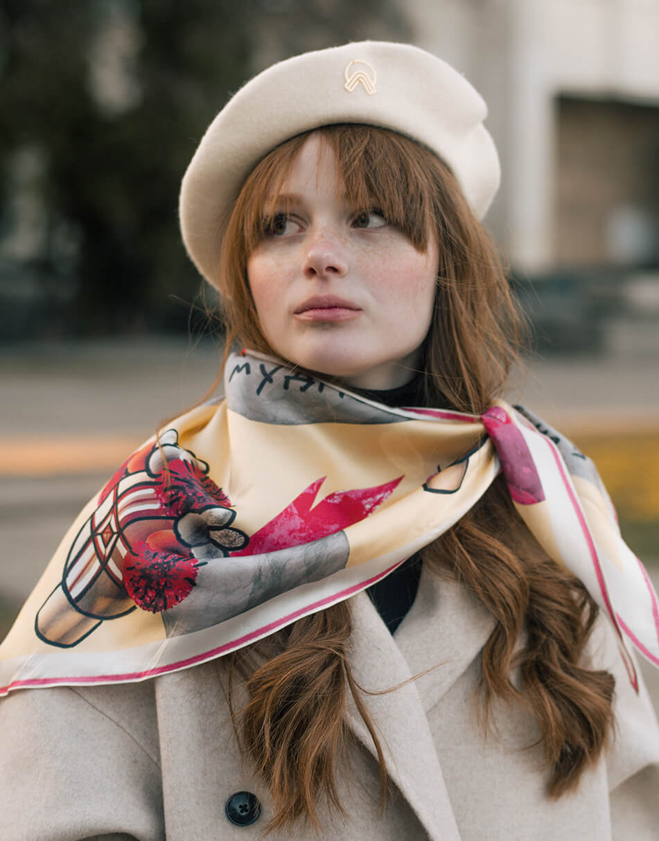 Берет з яскравої шерсті – класичний аксесуар, що займає почесне місце у гардеробі. Ми доповнили цю вічну класику логотипом NESAMOVYTO золотистого кольору. Наші берети є частиною базової колекції, стануть ідеальною основою для вашої творчості. Ми зробили широку палітру кольорів, щоб ви могли комбінувати берети з нашими хустинками з тенселу або шовку. Варіанти стилізацій, які ми рекомендуємо спробувати: зав’язати хустку на голову під берет або накинути хустку на плечі, а берет носити так, як вам найзручніше.