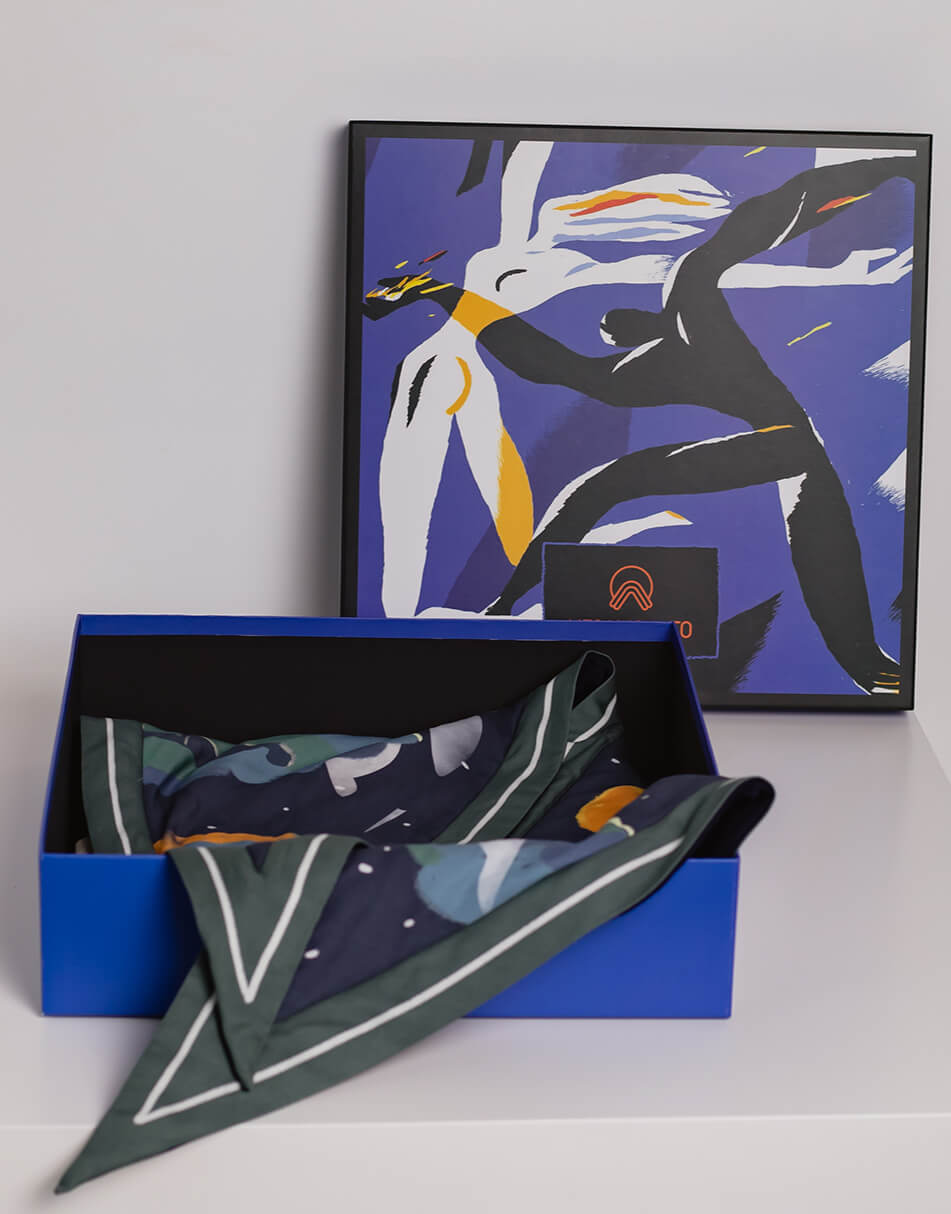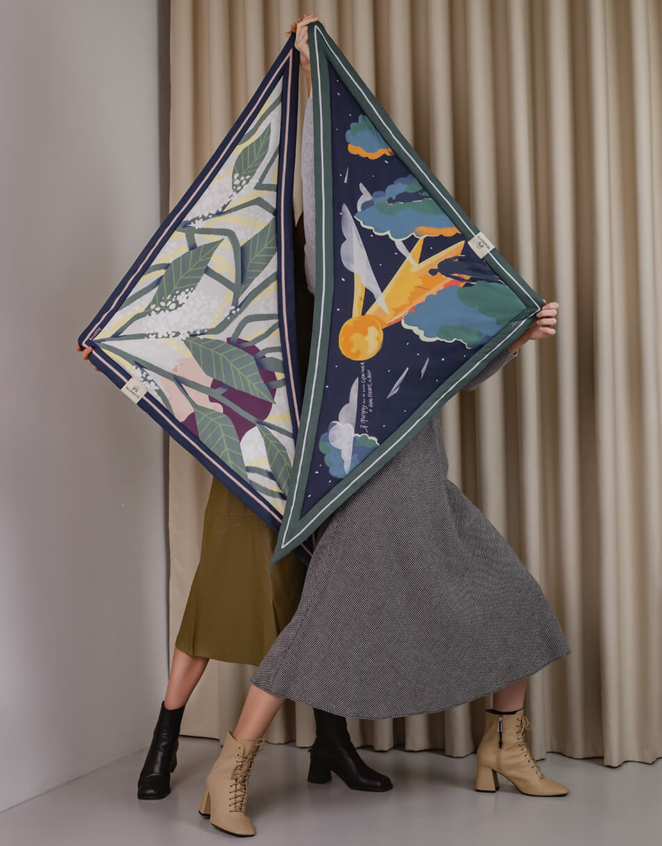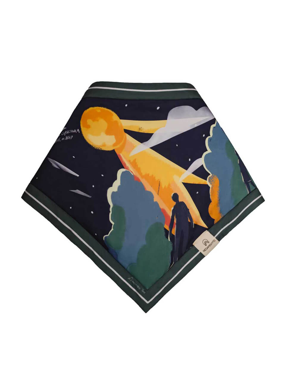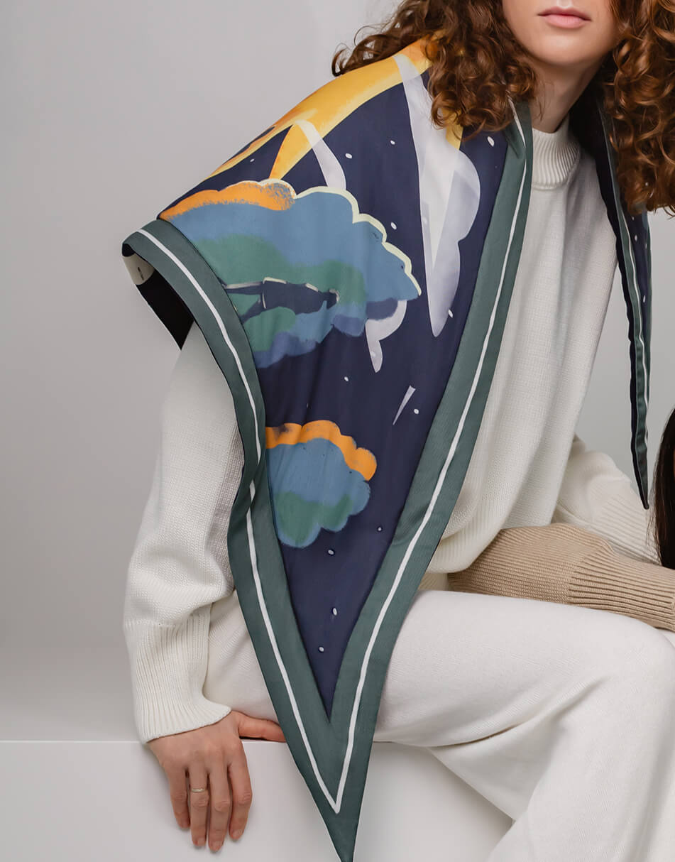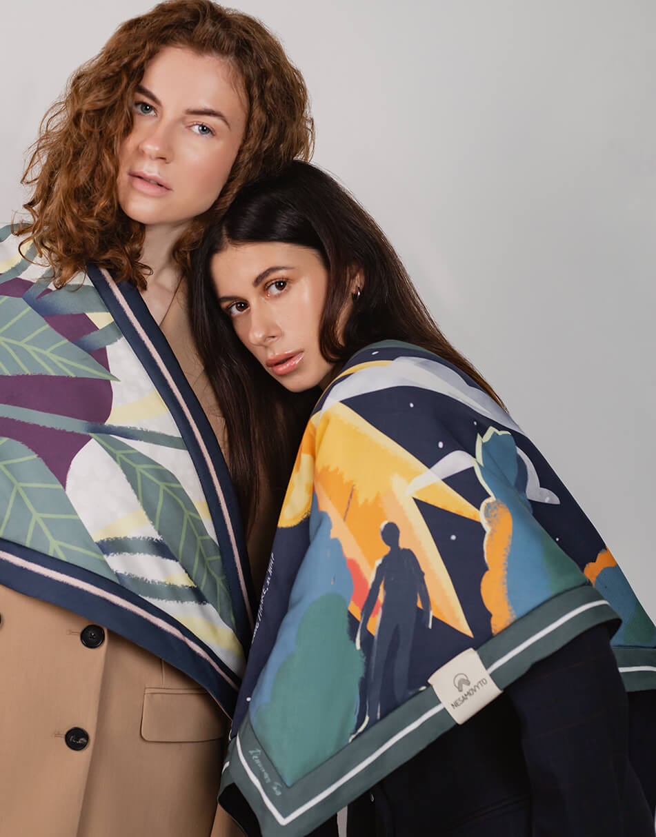 Кожна хустка створює неповторну атмосферу, адже основою її сюжетів стали особливі автентичні українські пісні, знайомі з дитинства. Вони пробуджують найщиріші почуття та нагадують про прості, але важливі життєві цінності. Хустка дбайливо виготовлена з матеріалу TENCEL, що створюється зі стружки евкаліптового дерева. Цей матеріал має антисептичні властивості, тому не викликає подразнень і не електризує волосся.