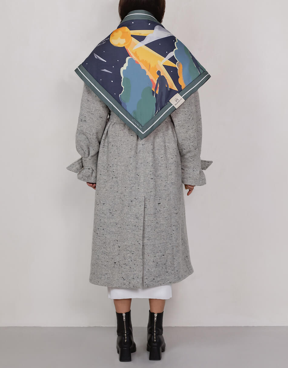 TENCEL — екологічний матеріал: для його виробництва використовується значно менше води, ніж для виготовлення бавовни, а також він підлягає вторинній переробці. Хустка доповнена інноваційним утеплювачем Thinsulate, який забезпечує комфорт і тепло навіть у найхолоднішу погоду. Ілюстрації, нанесені на TENCEL за допомогою цифрового друку на сучасному обладнанні, зберігають свої насичені кольори надовго.