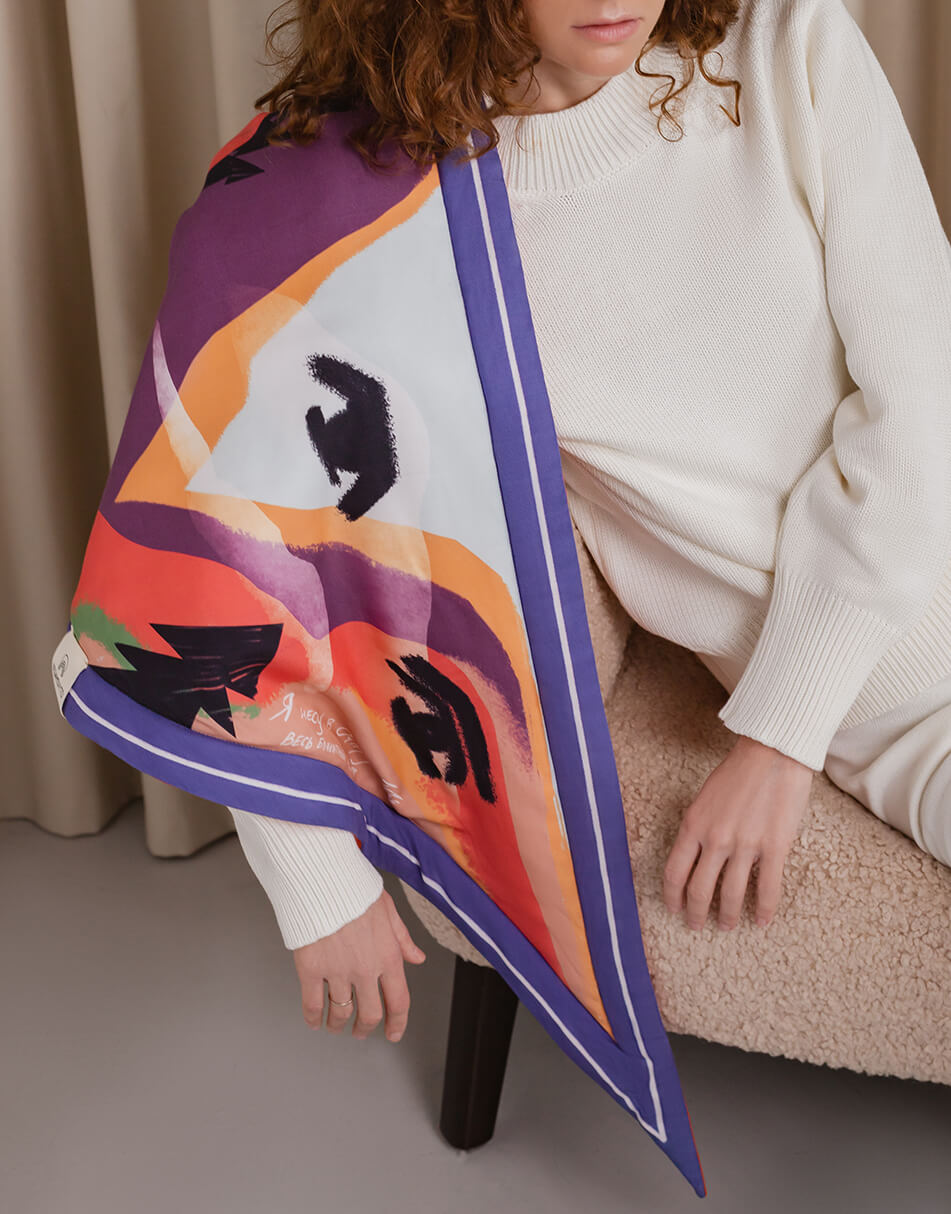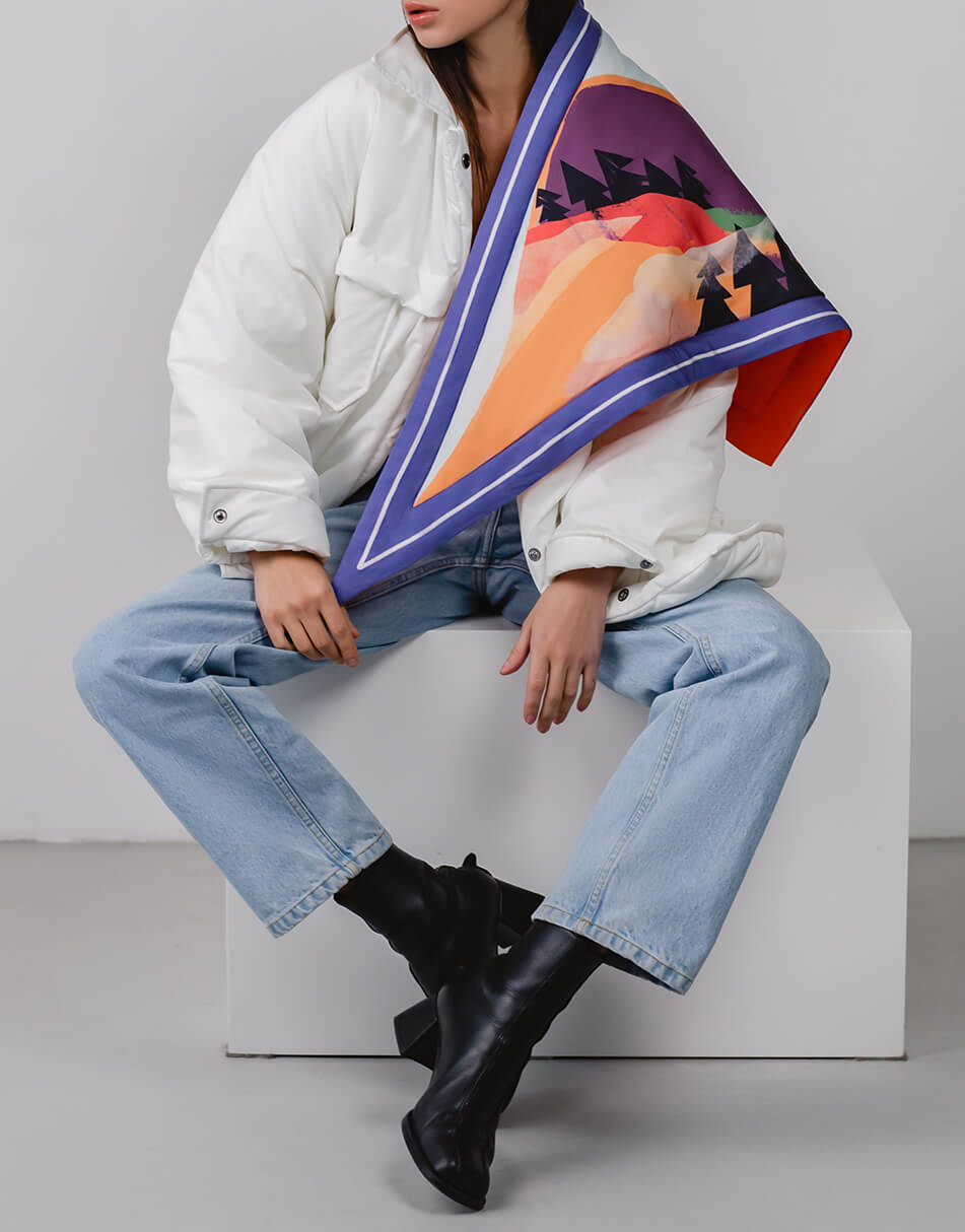 Кожна хустка розповідає історію. Особливі автентичні українські пісні, знайомі кожному з дитинства, пробуджують найщиріші почуття, нагадують про такі прості, але такі важливі цінності, лягли в основу сюжетів хусток. Кожна хустка дбайливо створена з TENCEL, яка виготовляється зі стружки евкаліптового дерева, має антисептичні властивості, тому не викликає подразнень і не електризує волосся. Нам імпонує, що TENCEL – екологічний: для виробництва використовується значно менше води, ніж для виготовлення бавовни, а також цей матеріал підлягає переробці. Хустка зігріє вас навіть у найхолоднішу погоду, адже кожен виріб доповнений інноваційним тонким утеплювачем Thinsulate. Ілюстрації, нанесені на TENCEL за допомогою цифрового друку на сучасному устаткуванні, і тому збережуть свої насичені кольори надовго.