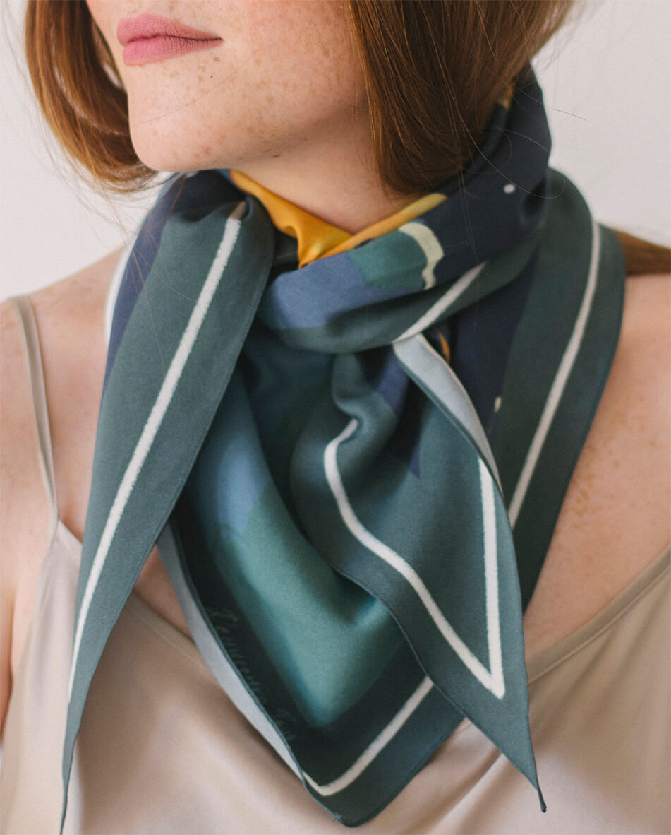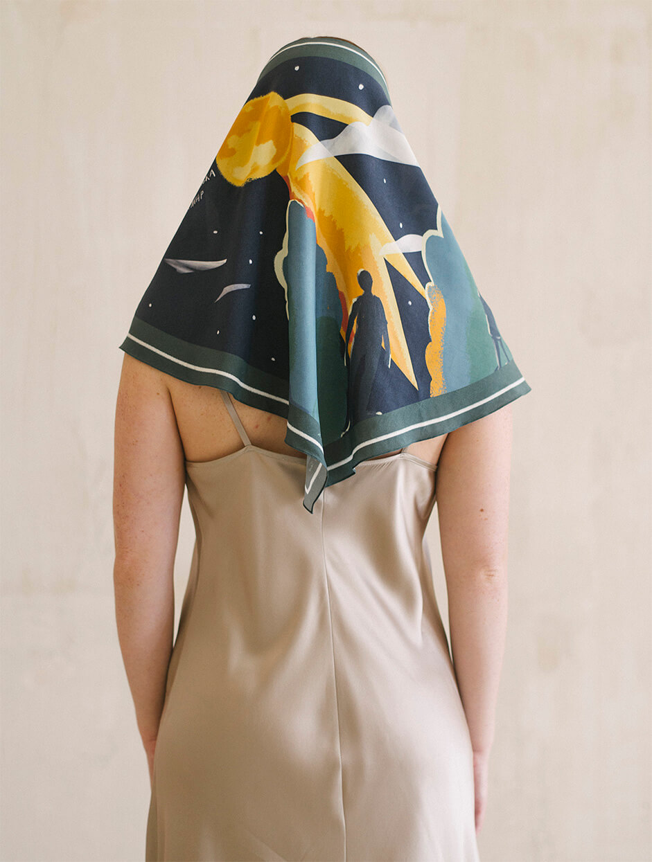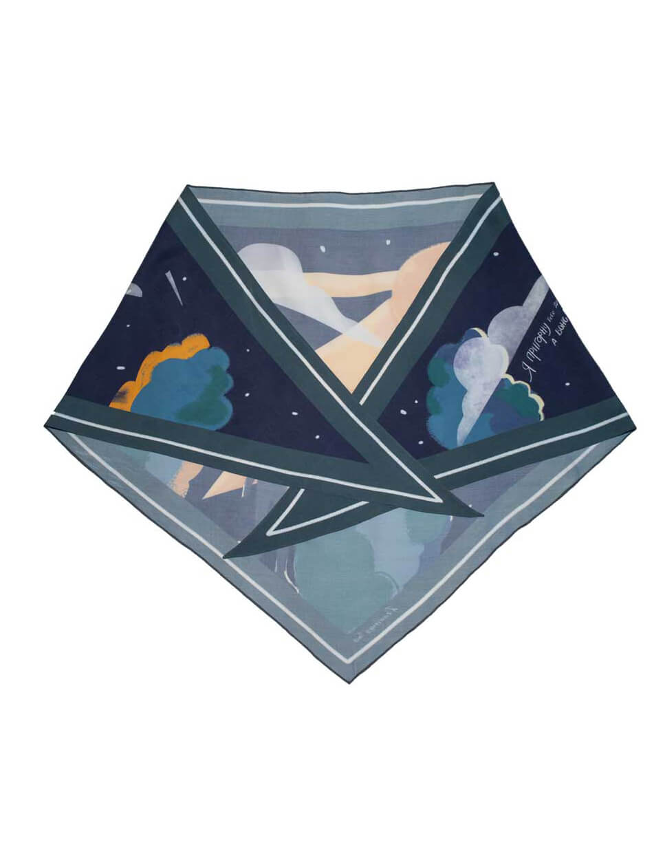 Малюнок платка нагадує музичну пластинку, адже кожен платок розповідає історію. Особливі аутентичні українські пісні, знайомі кожному з дитинства, пробуджують найщиріші почуття, нагадують про прості, але важливі цінності, які лягли в основу сюжетів платків. Кожен платок дбайливо створений з TENCEL, що виготовляється з стружки евкаліптового дерева, має антисептичні властивості, тому не викликає подразнень і не електризує волосся. Нам імпонує, що TENCEL — екологічний матеріал: для його виробництва використовується значно менше води, ніж для виготовлення бавовни, а також цей матеріал підлягає переробці. Ілюстрації, нанесені на TENCEL за допомогою цифрового друку на сучасному обладнанні, збережуть свої насичені кольори надовго.