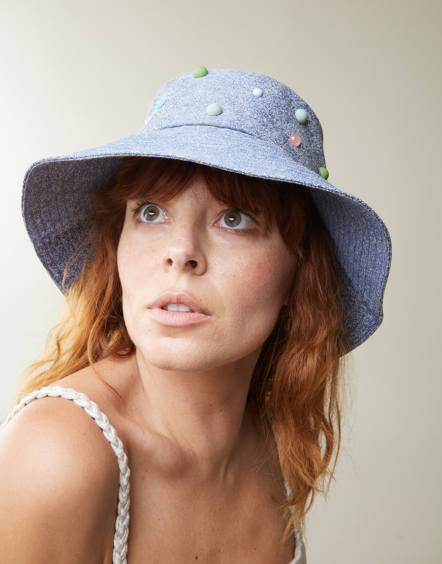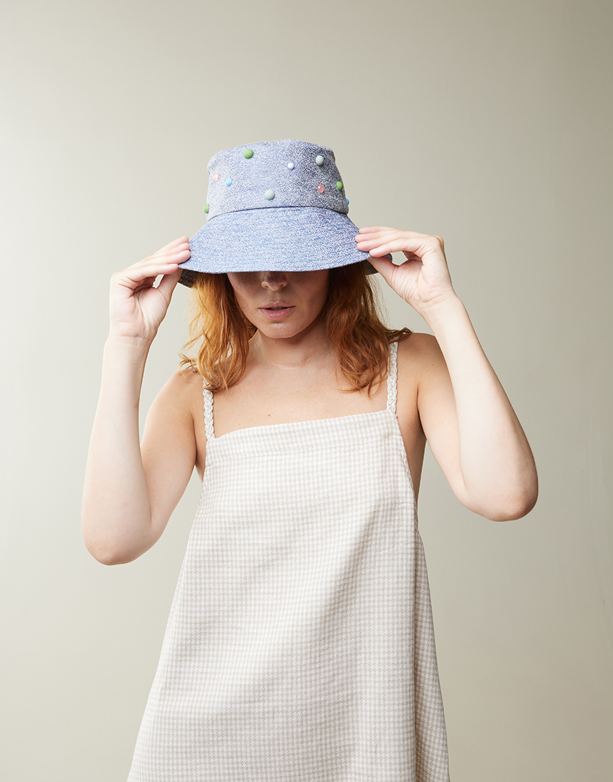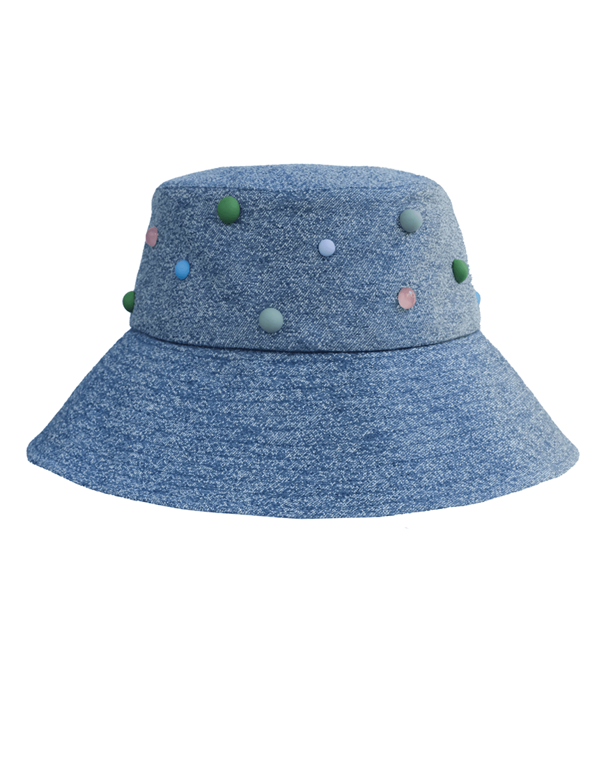Панама з джинс-жакарду з кольоровими намистинами