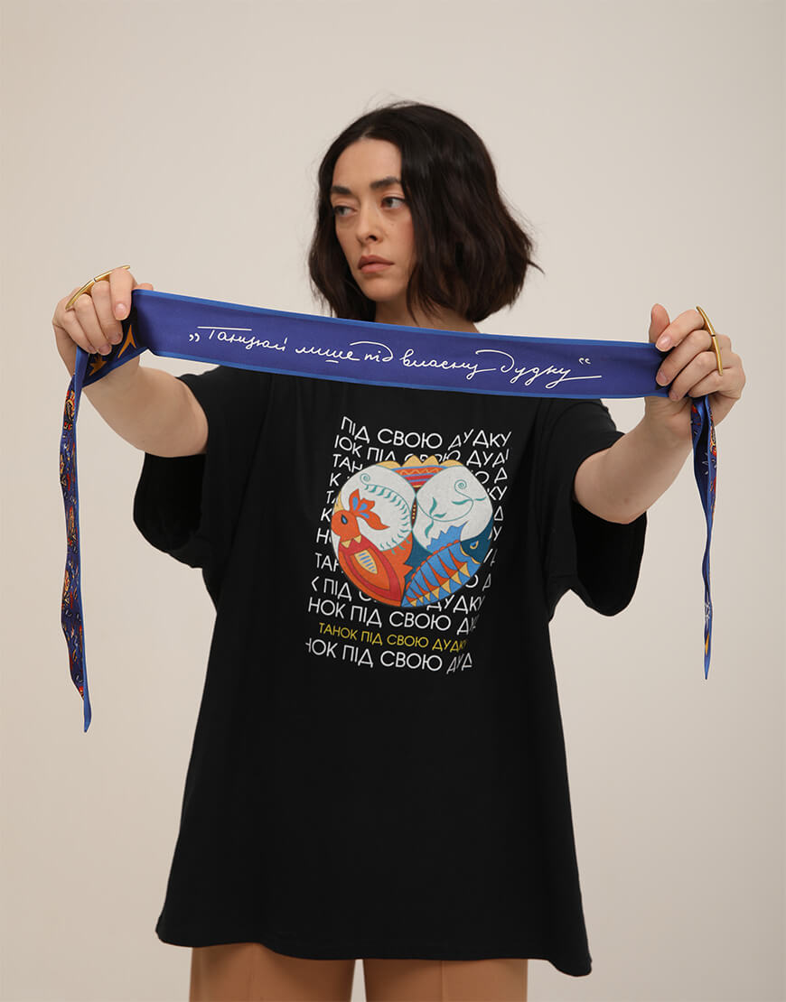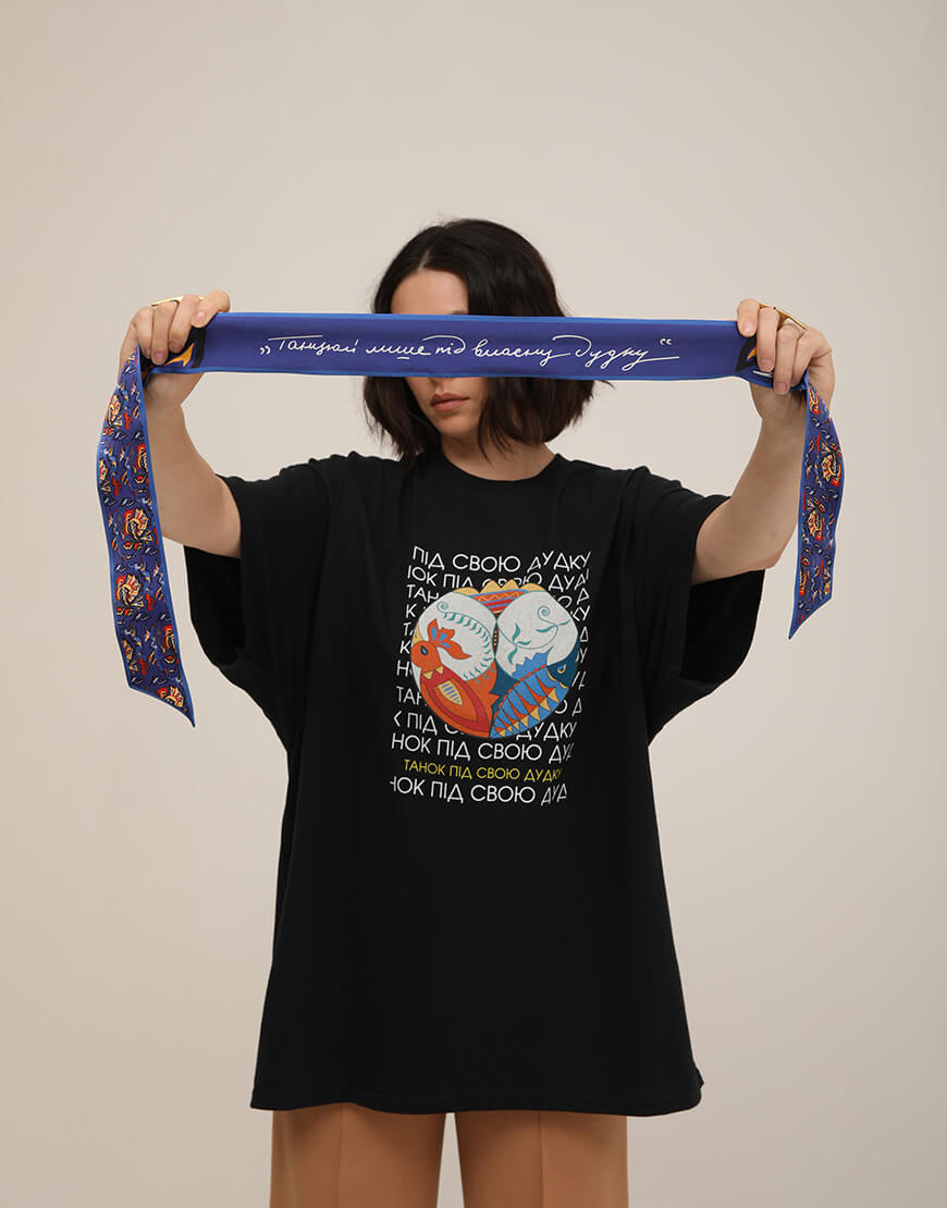 Колекція “Танцюй під власну дуду” створена в результаті багатосторонньої колаборації з ТРЦ Gulliver, ідейними натхненниками проєкту: Музеєм шістдесятництва та Українського інституту національної памʼяті, cowo.guru та спільноти «Поступ-14», завдяки яким побачив світ перший художній альбом Любові Панченко «Повернення».
