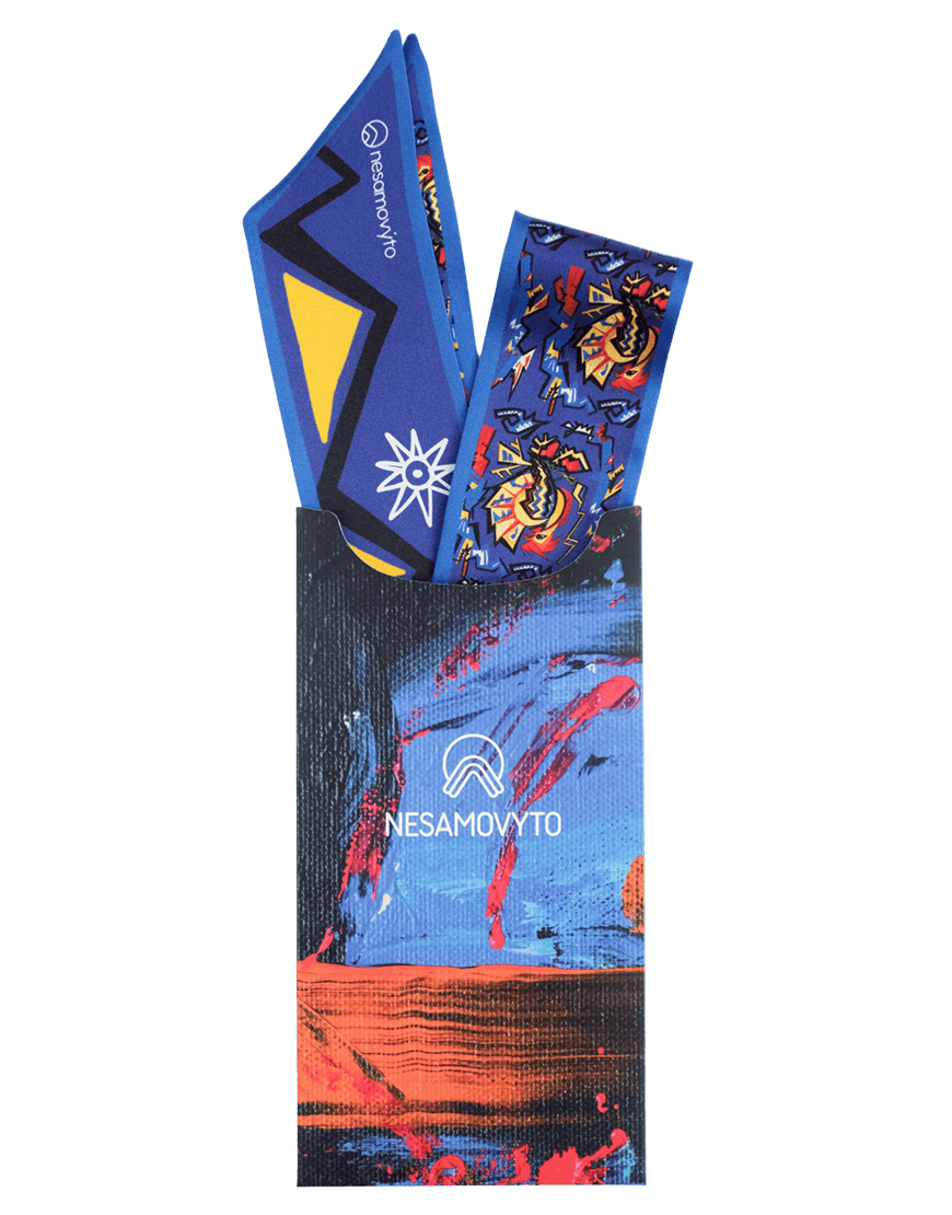 Витончена тонка хустина, з однієї сторони оздоблена авторським паттерном-ілюстрацією, натхненим мотивами картини Л. Панченко «Кугутик» 1969 року.