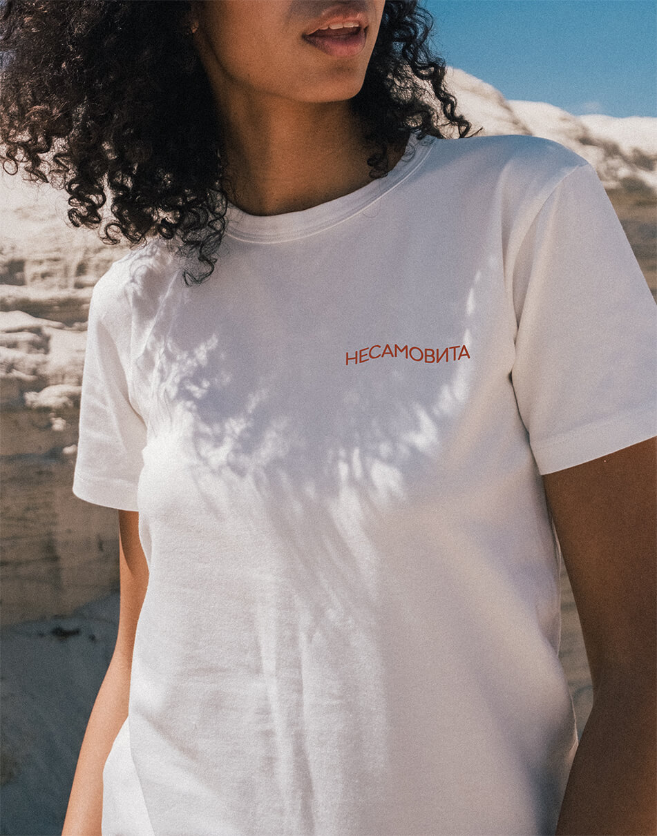 Кожна жінка має неповторний характер і він часто залежить від настрою. Розповісти всім, який ваш настрій сьогодні, можна завдяки напису на футболці Nesamovyto. Несамовита, Розбишака, Файна, Шалена, Невинна – ми підібрали палітру емоцій спеціально для вас. Біла футболка NESAMOVYTO – це полотно для вашої творчості. Її можна зробити складовою будь-якого образу, міксувати з класичними речами, жіночними спідницями, спортивним аутфітом, використати як чисте тло для акцентних аксесуарів або весняних хусток.