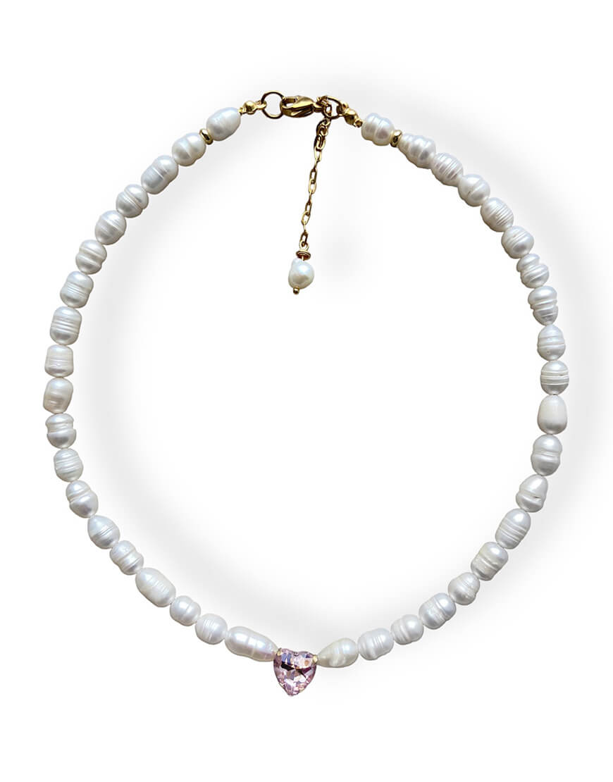 Доставка впродовж 2-5 робочих днівПерлинне намисто з рожевим серцем, вага 20г, довжина 36+4 см