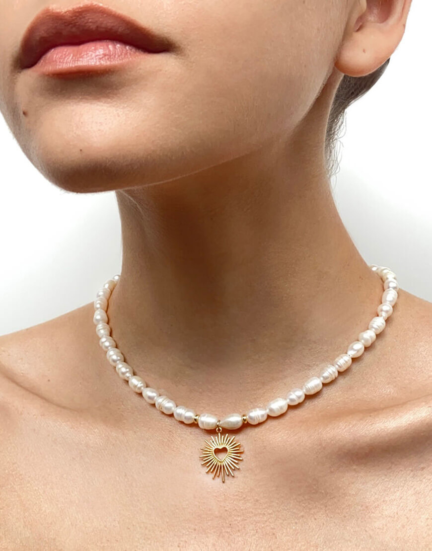 Доставка впродовж 2-5 робочих днівНамисто з натуральних перлин з золотим серцем, довжина 37+3 см