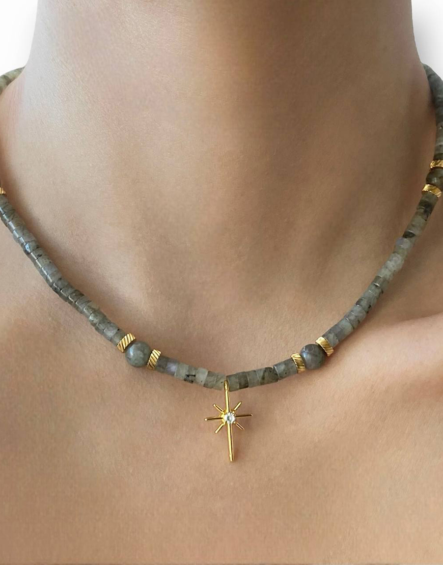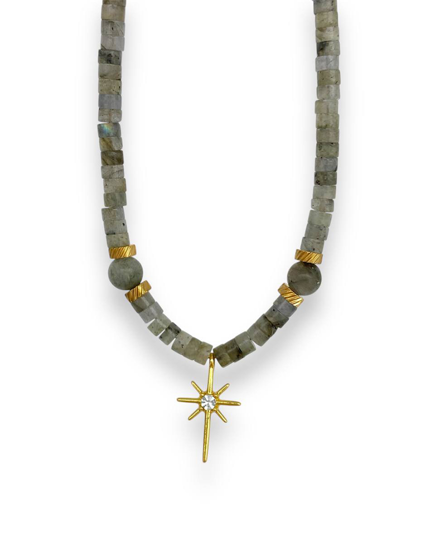 Намисто з лабрадариту та позолоченою підвіскою зірка