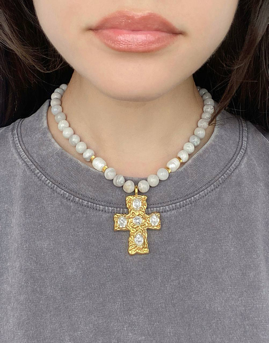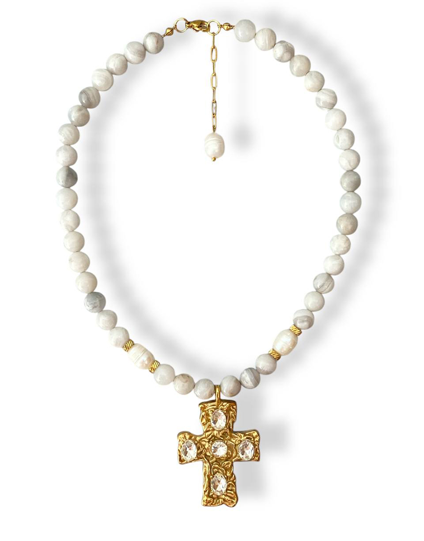 Акцентне намисто з сірого агату з масивною хрестоподібною підвіскою
