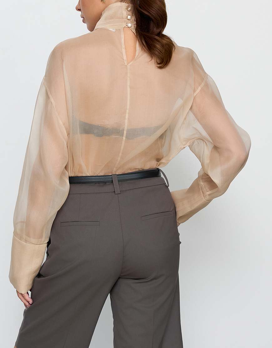 Горловина — воротничок-стійка, м’яка, повітряна.