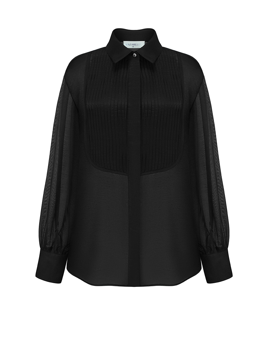 Спереду – манишка, що складається з множини дрібних складок одного розміру.