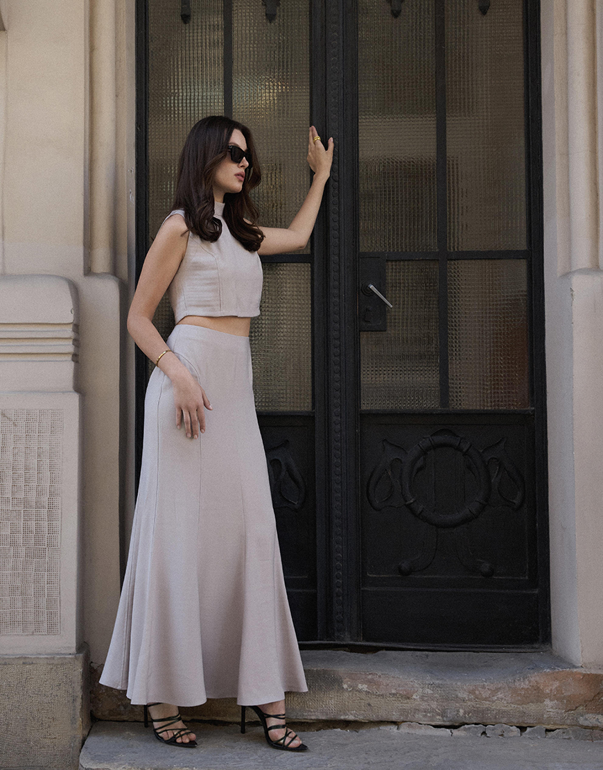 Топ (блуза) – напівприлеглого силуету, без рукавів.