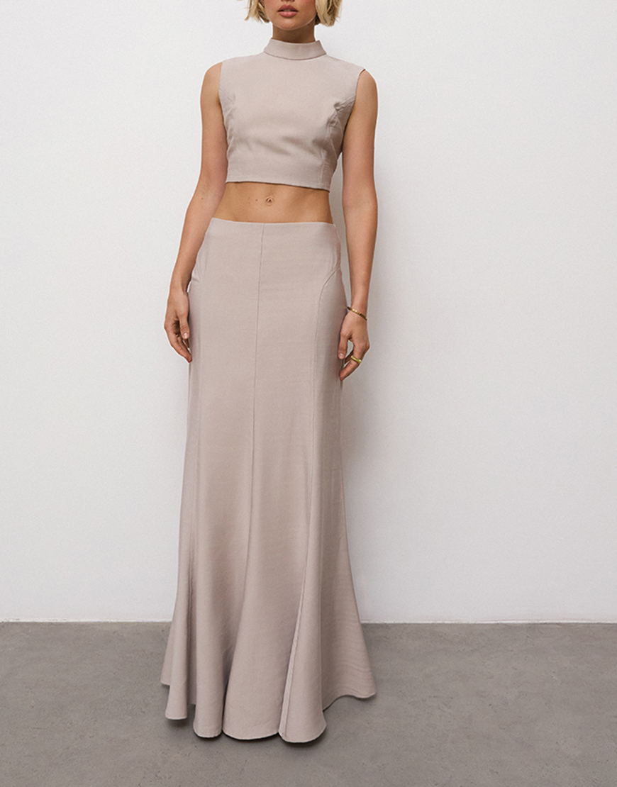 Верх спідниці оброблений обтачкою пояса (тобто спідниця без пояса).