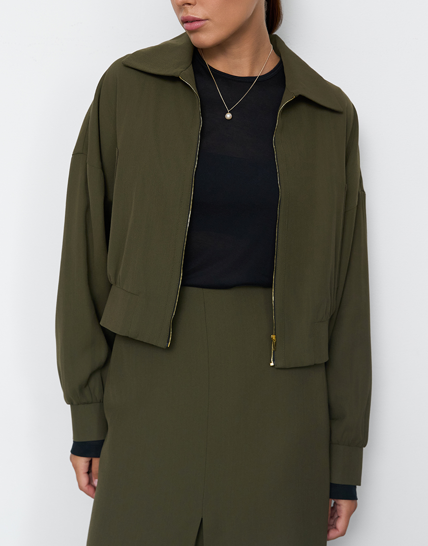 По центру переду – зустрічна складка, що переходить у розріз.
