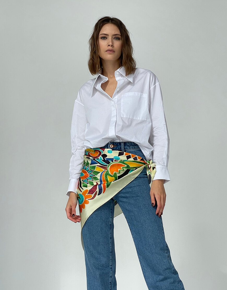 Її можна носити нескінченною кількістю способів! Носіть її традиційно на голові, або оберніть навколо шиї та плечей, або використовуйте як топ чи пояс на талії.