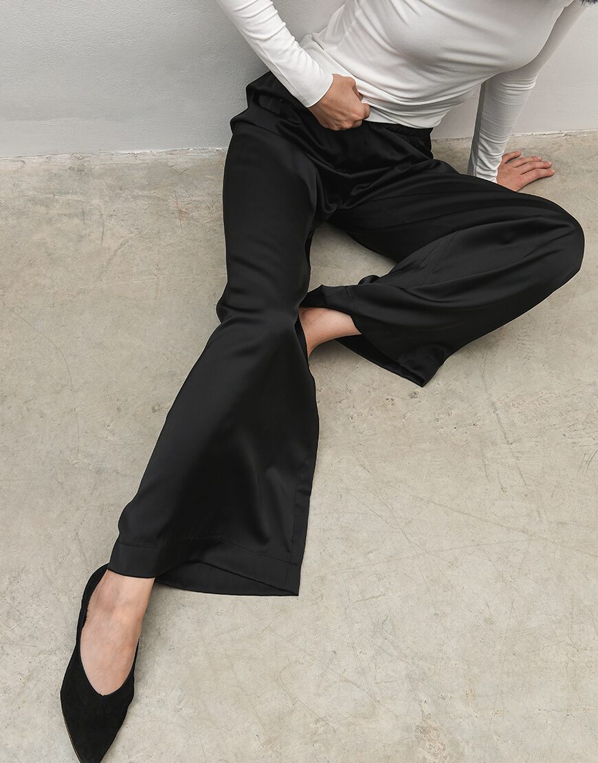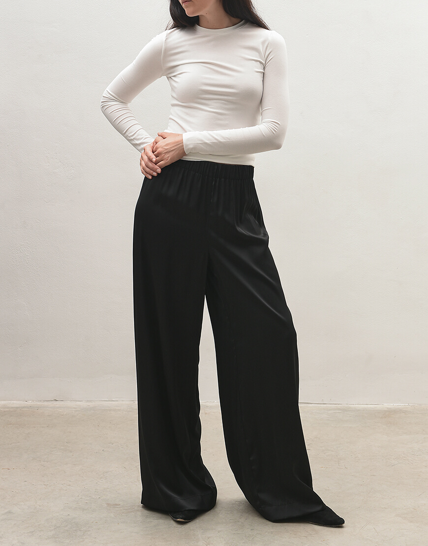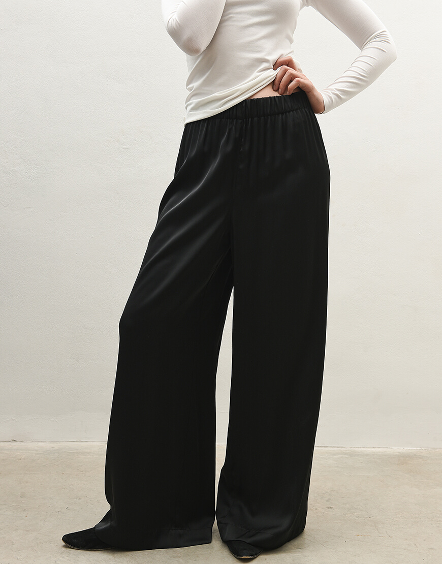 Штани палаццо на широкій резинці. Без кишень.
