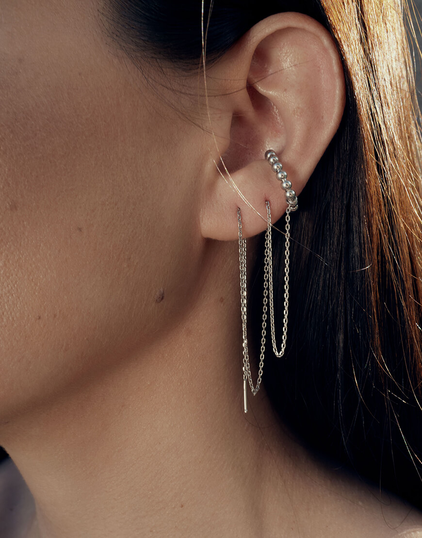 Доставка в течение 2-5 рабочих днейВони космічні! Класичний тонкий ланцюжок-протяжка переходить у наш фірмовий кафф із срібних кульок. Ми надали протяжці щедрої довжини 25 см, аби вона була максимально ефектною та залишала простір для твоєї фантазії. У парі з каффом-протяжкою йде пусет-кулька. Носи його на протилежному вушку, або разом із каффом, якщо маєш два проколи.