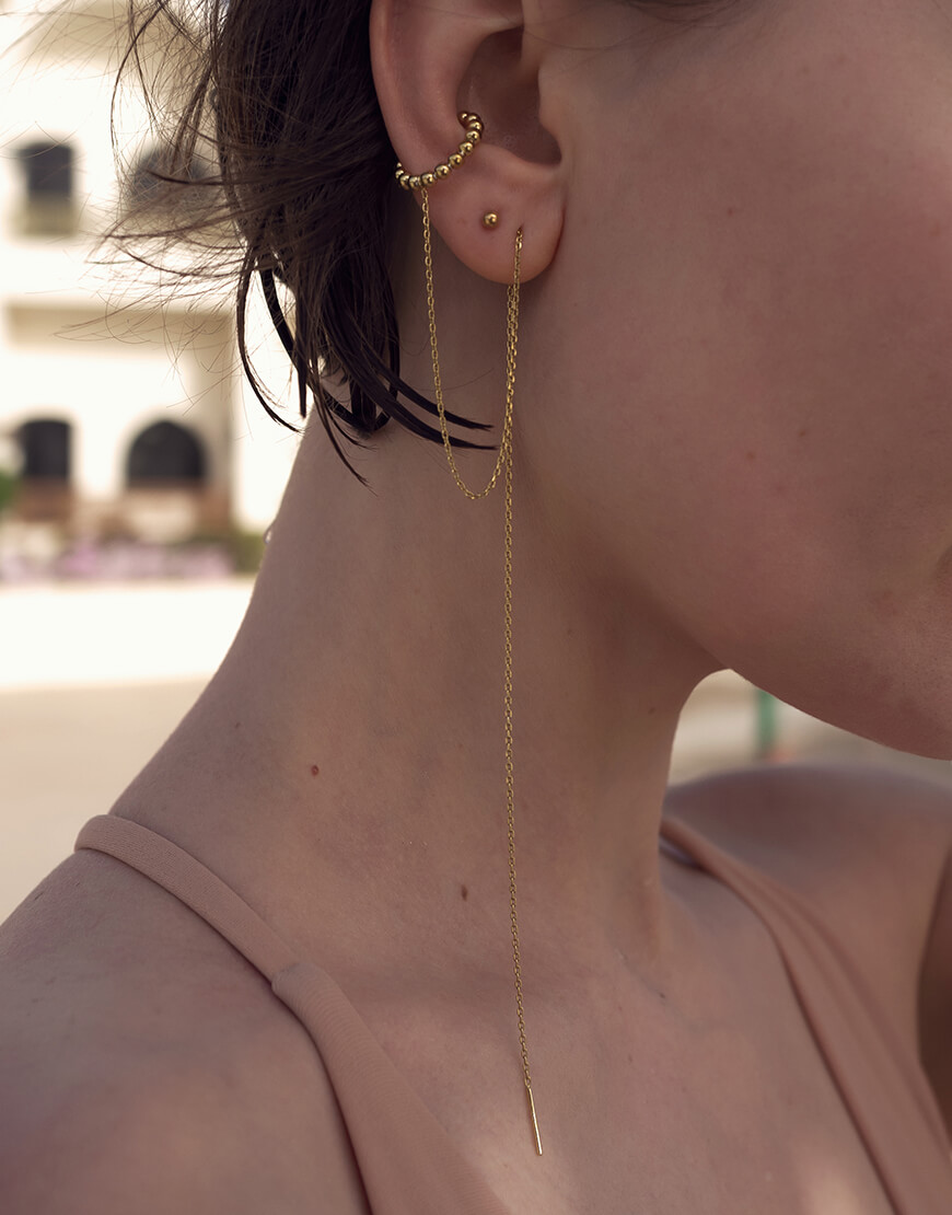 Доставка в течение 2-5 рабочих днейВони космічні! Класичний тонкий ланцюжок-протяжка переходить у наш фірмовий кафф із срібних кульок. Ми надали протяжці щедрої довжини 25 см, аби вона була максимально ефектною та залишала простір для твоєї фантазії. У парі з каффом-протяжкою йде пусет-кулька. Носи його на протилежному вушку, або разом із каффом, якщо маєш два проколи.