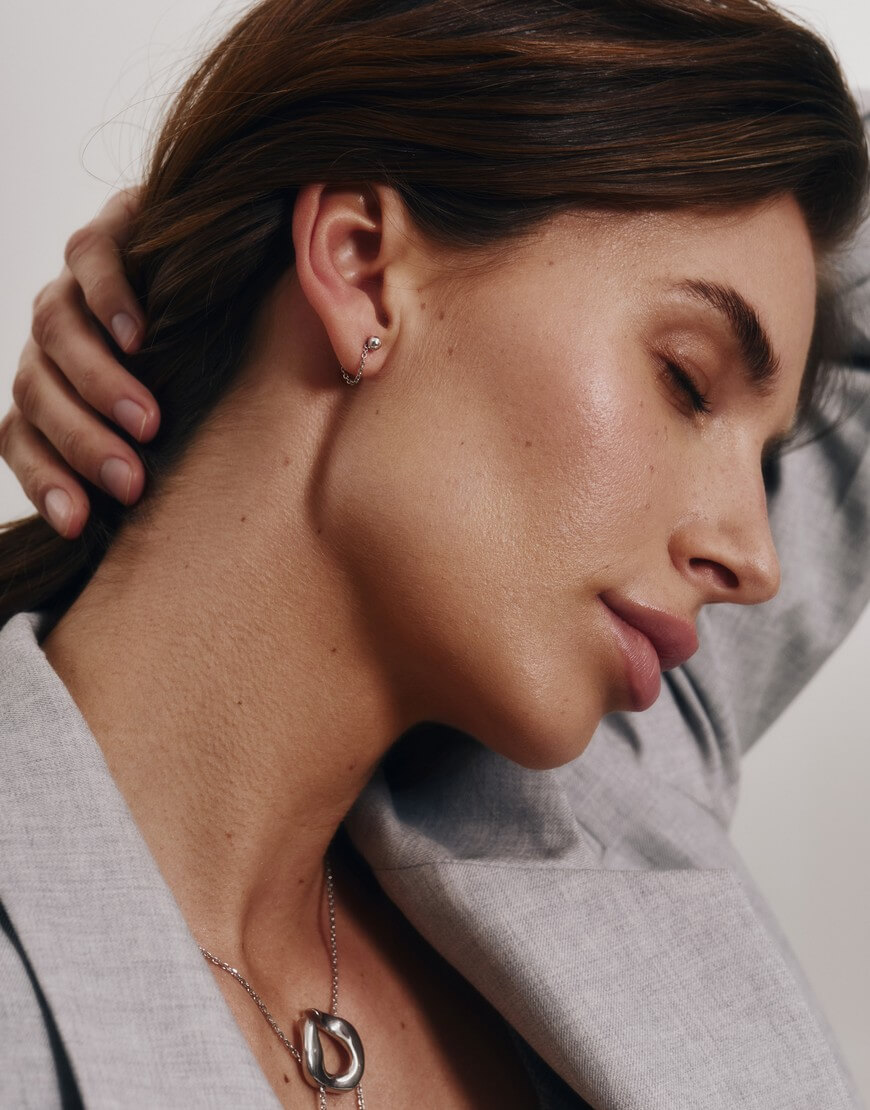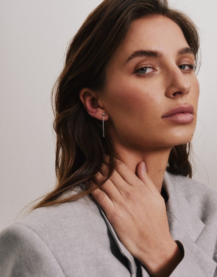 Доставка впродовж 2-5 робочих днівМаленькі охайні сережки із ланцюжками навколо вушка. Секрет: поверни застібку за вушком проти часової стрілки, аби ланцюжок щільно прилягав до мочки вуха, або вирівняй, аби він вільно звисав під вушком.