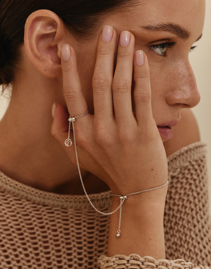 Делікатний слейв-браслет із регульованим розміром як на зап’ястку, так і на пальці.