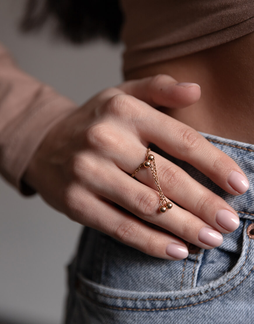 #3 Каблучка на фалангу з двома ланцюжками різної довжини