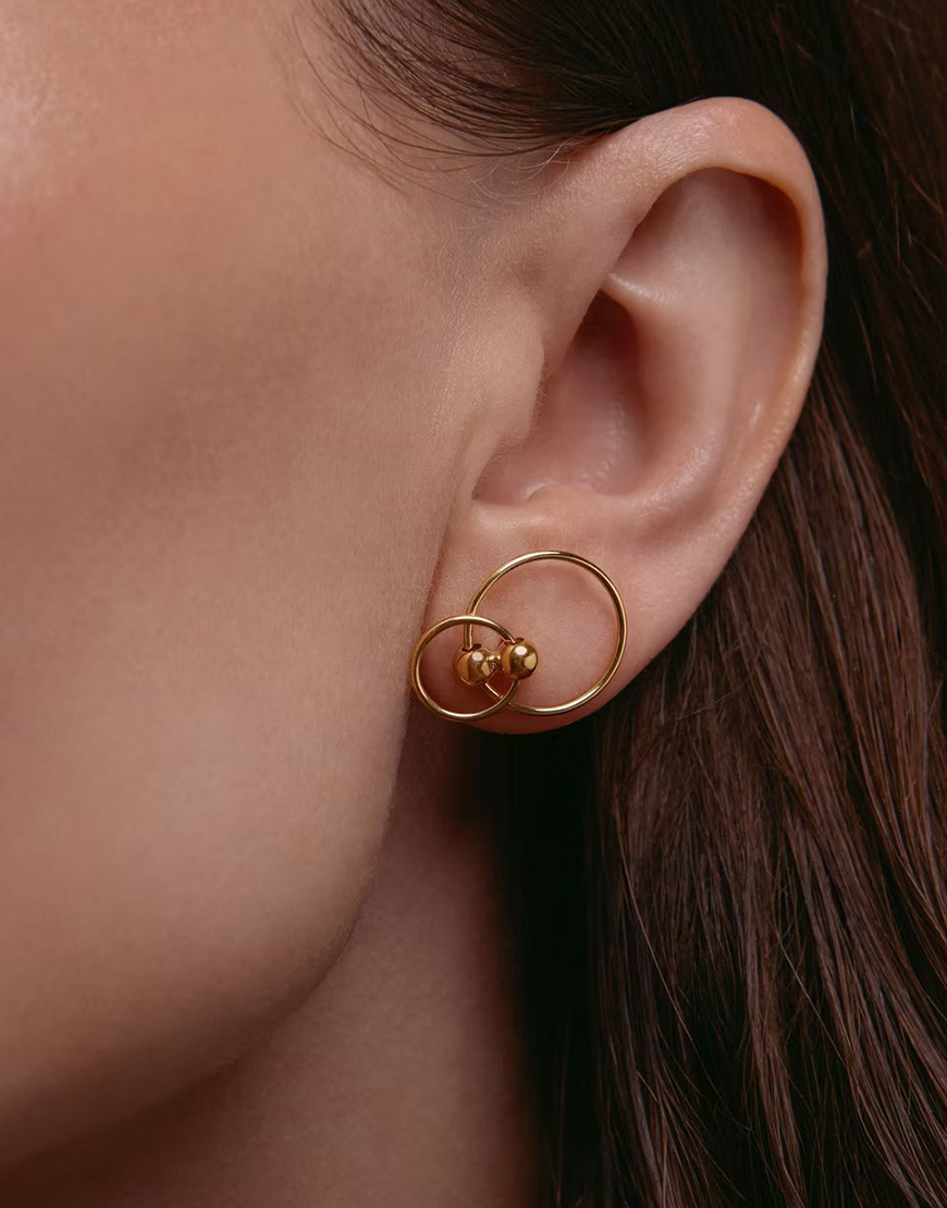 Доставка впродовж 2-5 робочих днівОбертай кільця навколо намистин, а сережку – навколо її власної вісі.Розкривай сережки, як пелюстки квітки, для сміливого вечірнього образу.Накладай кільця одне на одне в різних комбінаціях для гіпнотичних візерунків. Дозволь сережці повторювати анатомію вуха чи виходити за його межі. Звертаємо твою увагу: кожне кільце ми спаюємо вручну — з дорогоцінного дроту, який протягуємо власноруч. Можлива незначна асиметрія виробу не вважається дефектом, є природною особливістю ручної роботи і підкреслює унікальність саме твого екземпляру.