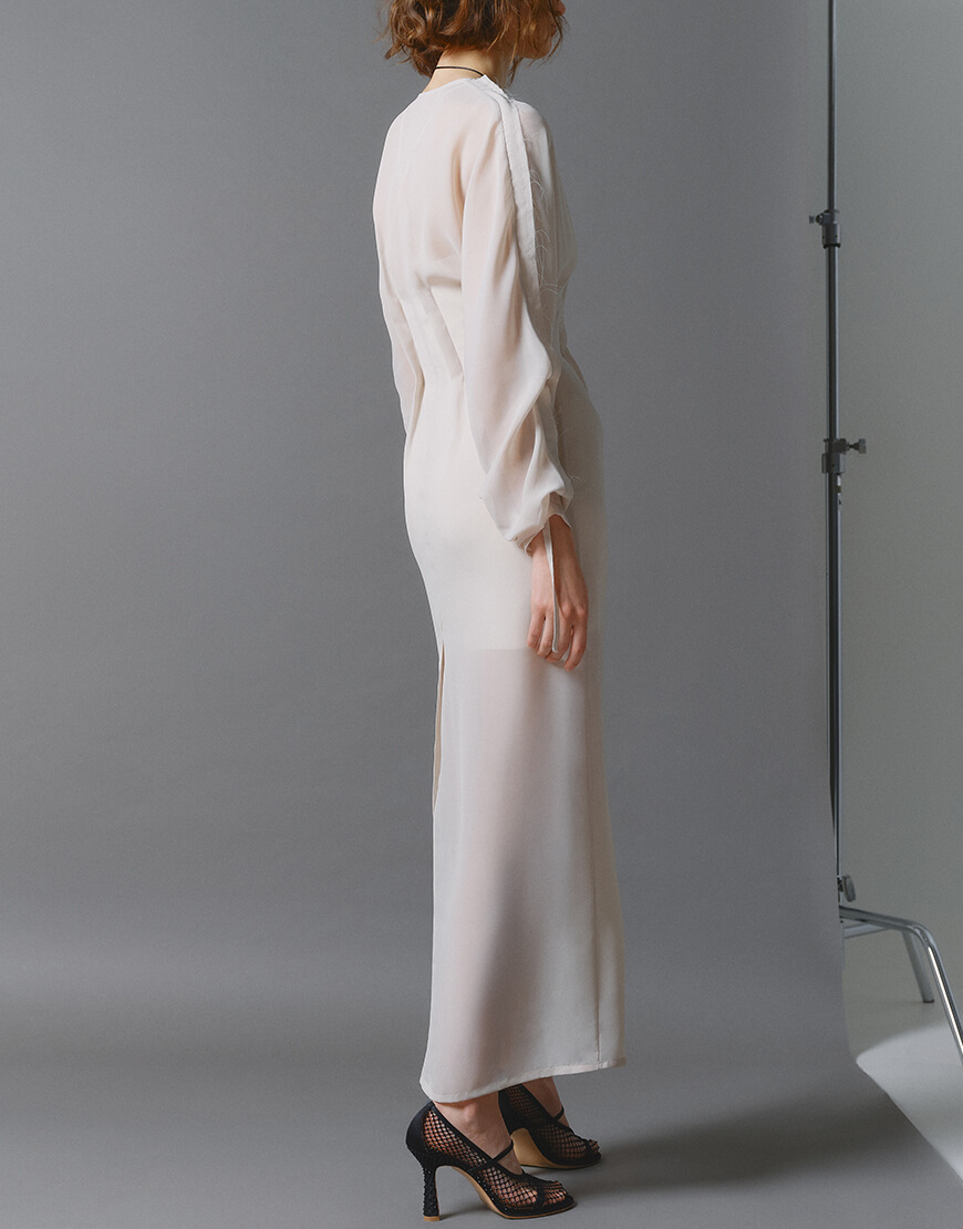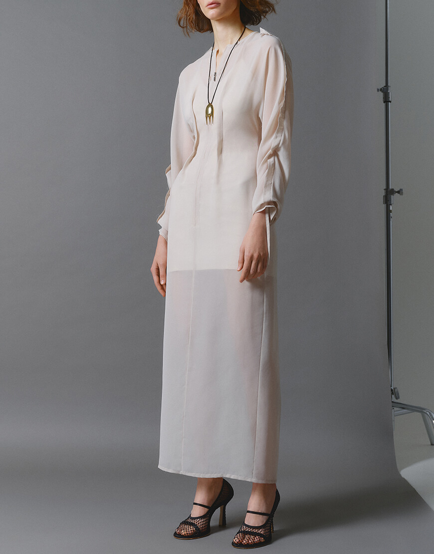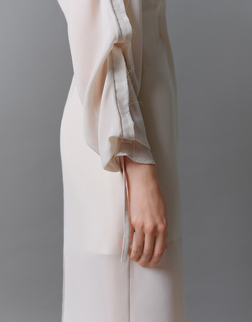 Доставка протягом 5-7 робочих днівПодвійна шифонова сукня із зав’язками на рукавах.