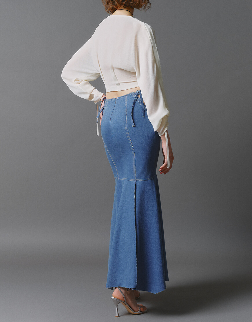 Доставка протягом 5-7 робочих днівДжинсова максі спідниця з розрізами від коліна.