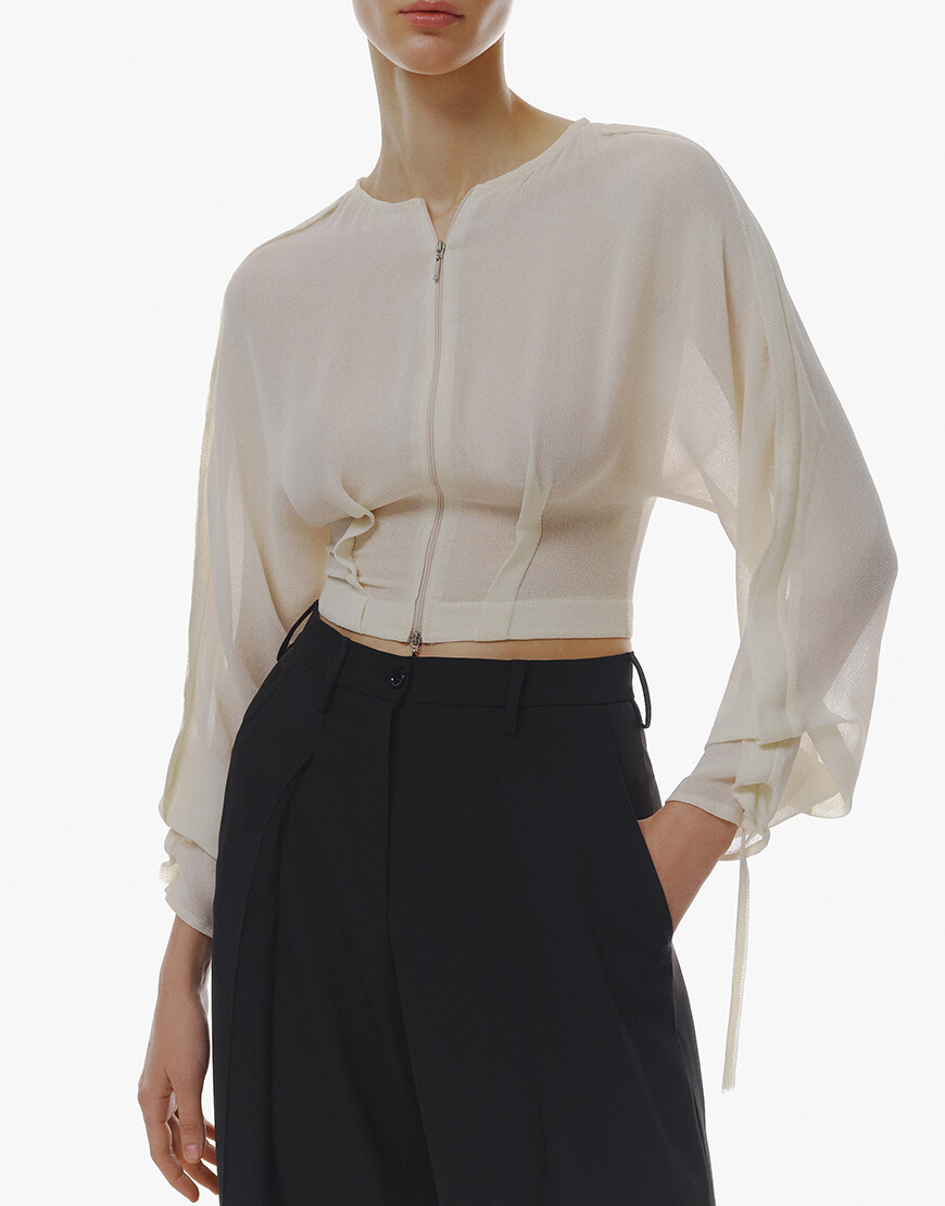 Доставка протягом 5-7 робочих днівПрозора блуза із зав’язками на рукавах та зі складками на талії.