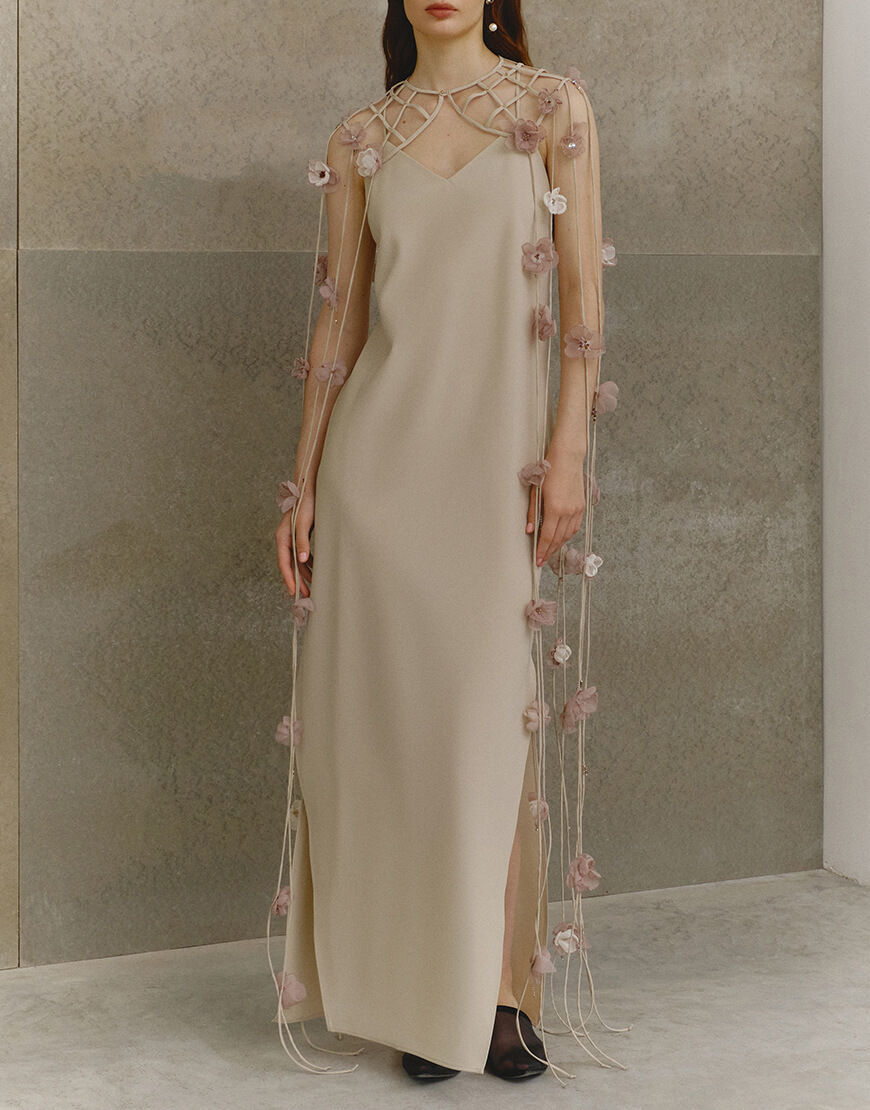 Накидка з квітів не входить до комплекту з сукнею, і продається окремо.