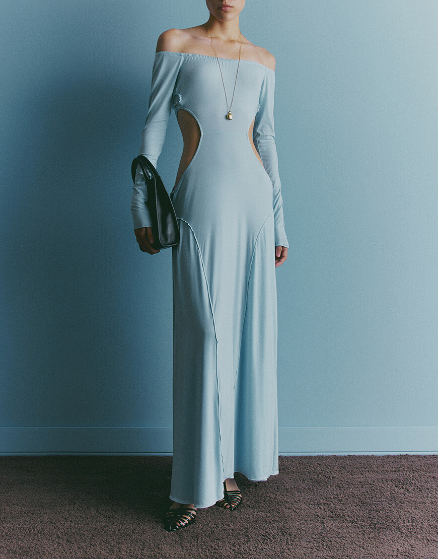 Доставка протягом 5-7 робочих днівТрикотажна блакитна сукня з розрізами на талії
