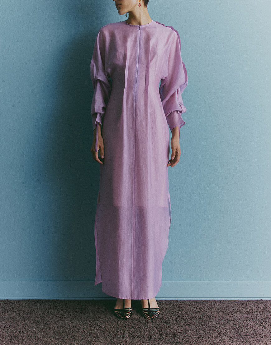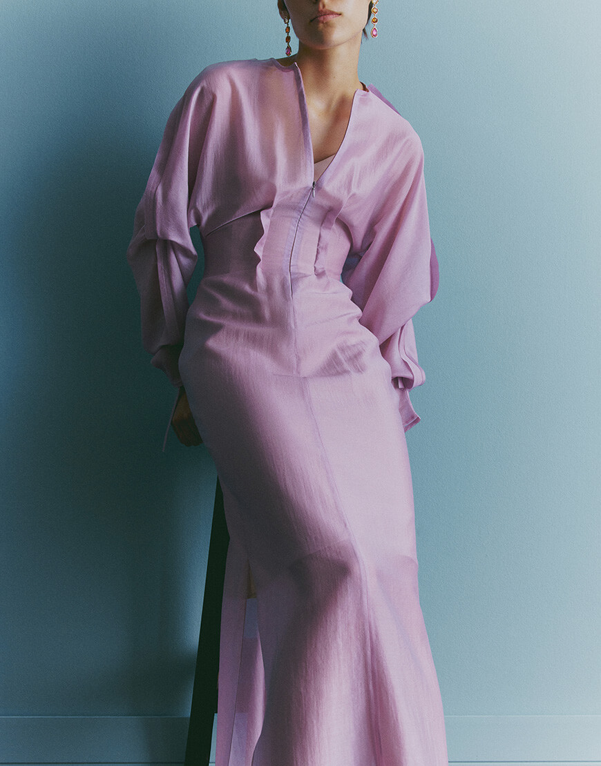 Доставка протягом 5-7 робочих днівПодвійна шовкова сукня з декоративною тасьмою