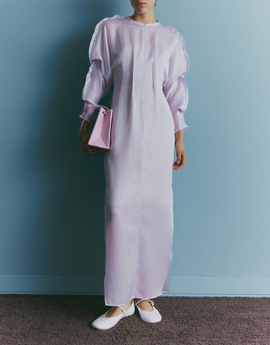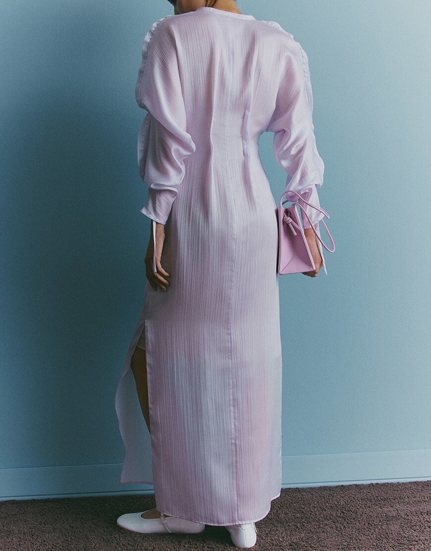 Доставка протягом 5-7 робочих днівПодвійна шовкова сукня з декоративною тасьмою