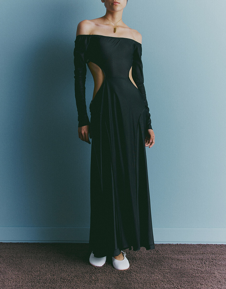 Доставка протягом 5-7 робочих днівТрикотажна чорна сукня з розрізами на талії