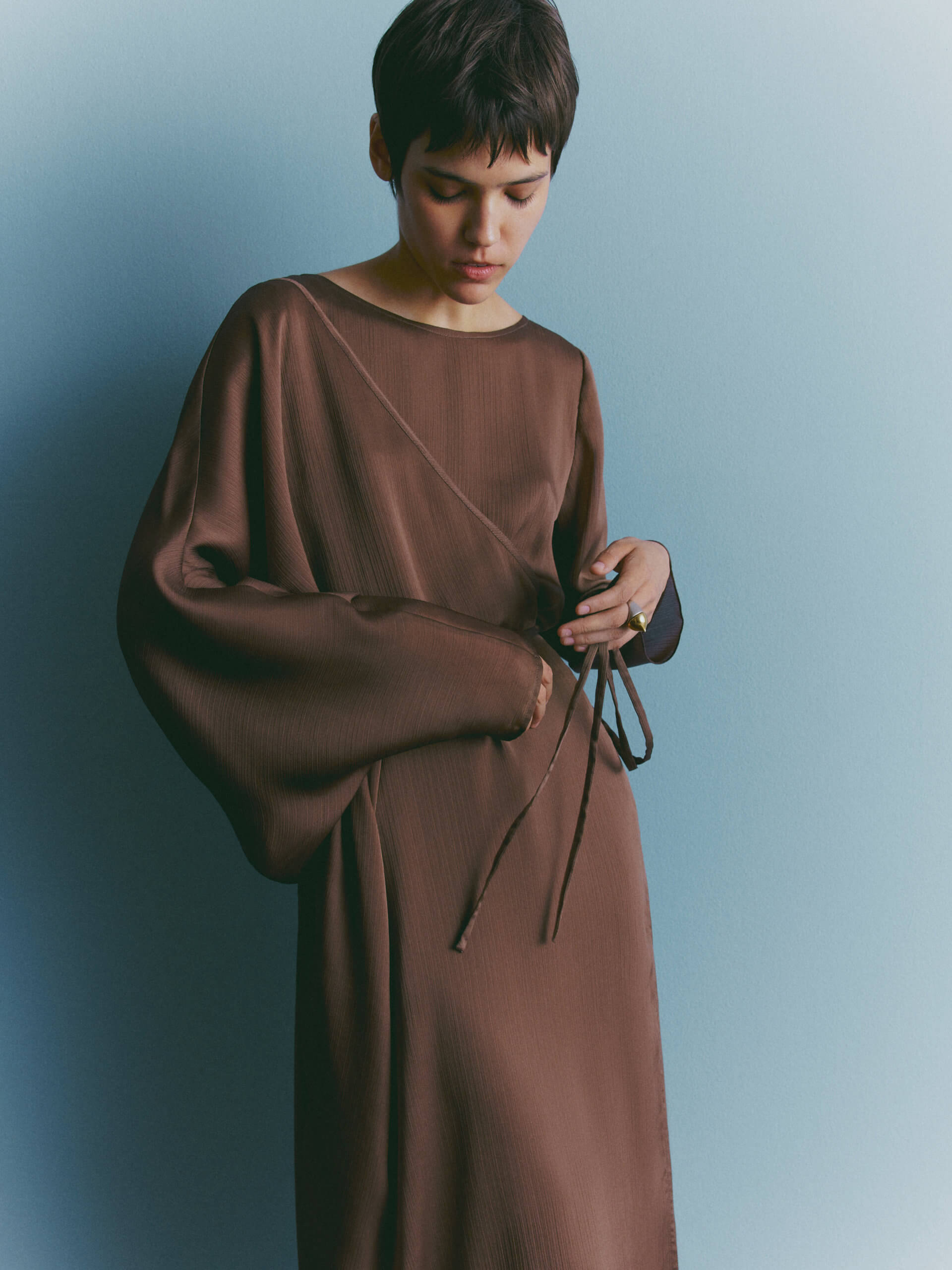 Доставка протягом 5-7 робочих днівСукня вільного крою з зав’язкою на талії