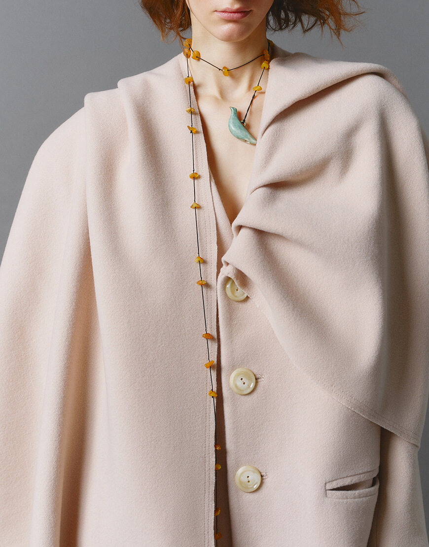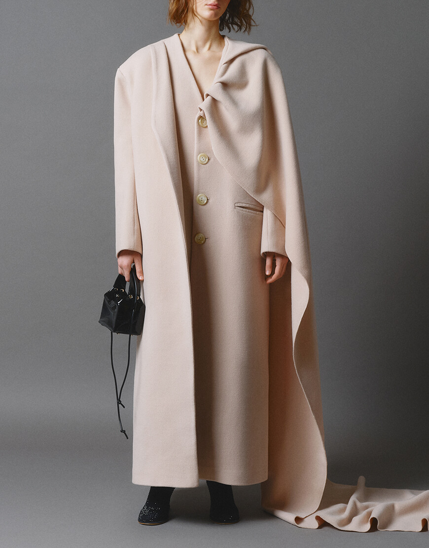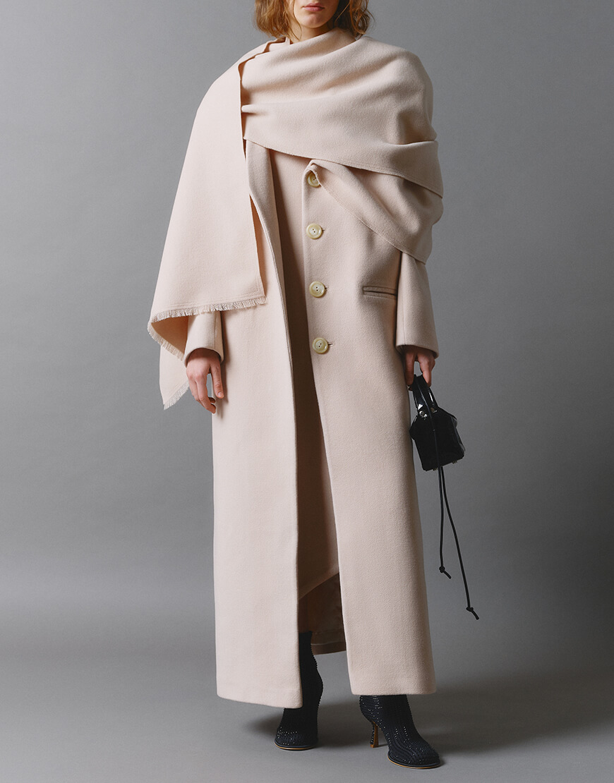 Доставка протягом 5-7 робочих днівДовге кашемірове пальто з невідстібним шарфом (накидкою).