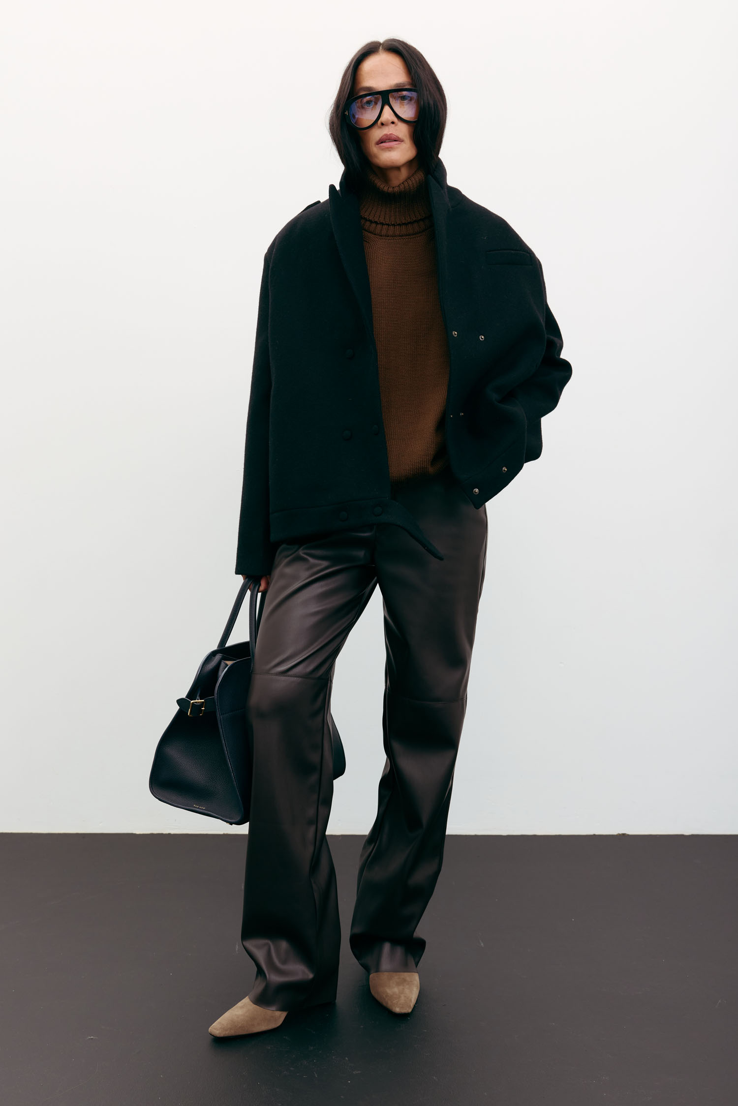 Жіноче пальто-жакет чорного кольору виконане зі щільної вовняної тканини. Пальто має структурований силует, бічні функціональні кишені та застібки на кнопки. Вовна забезпечує тепло й відчуття затишку в прохолодну пору. Підходить для різноманітних образів осінньо-зимового сезону.