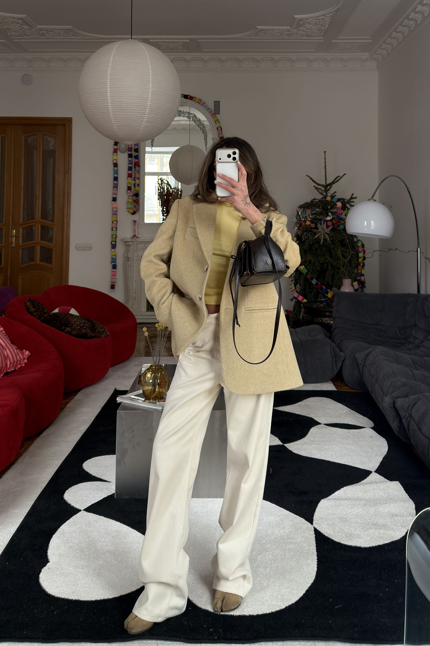 ДоставкаЖіноче пальто-жакет з вовняної тканини в відтінку Warm oatmeal.
