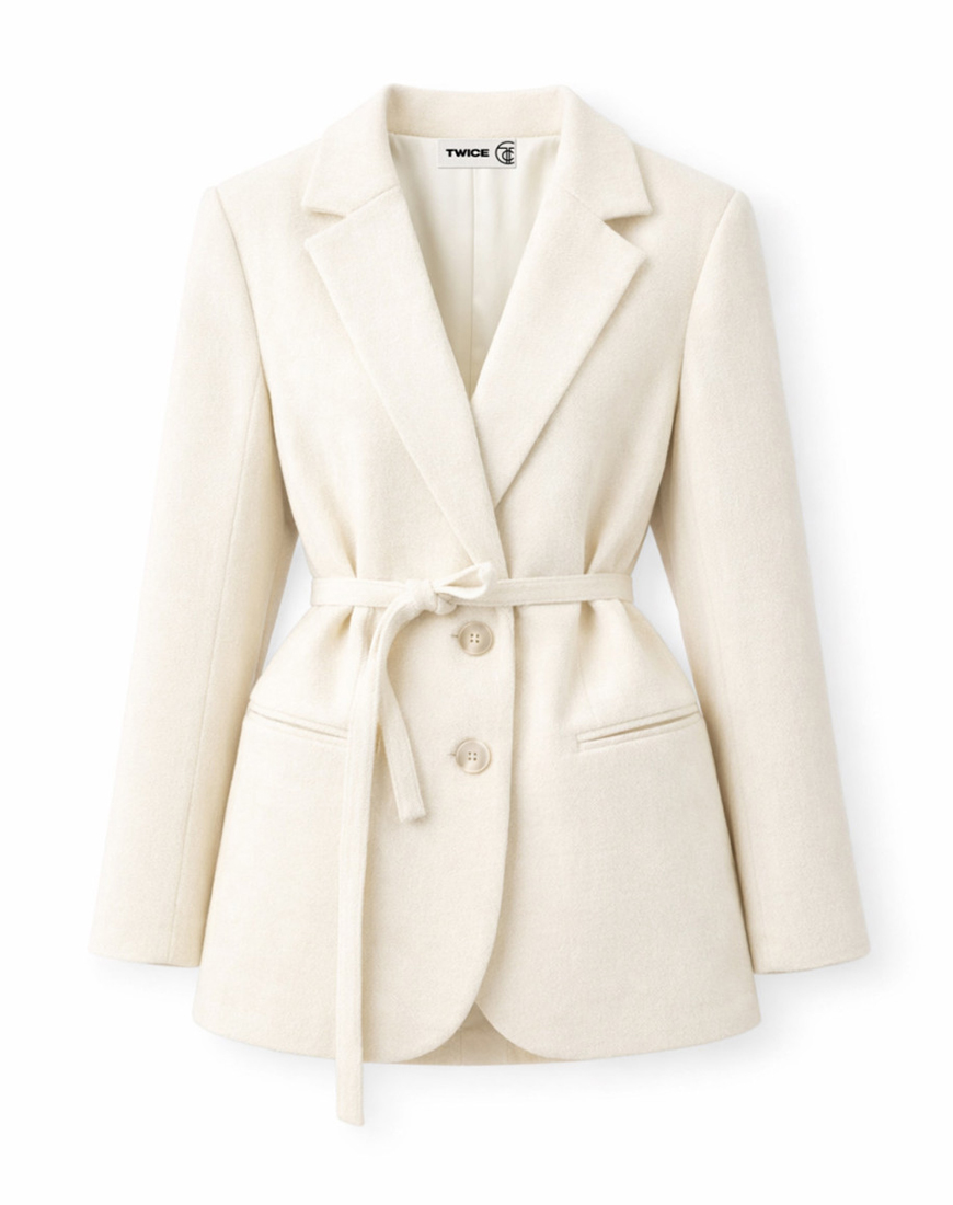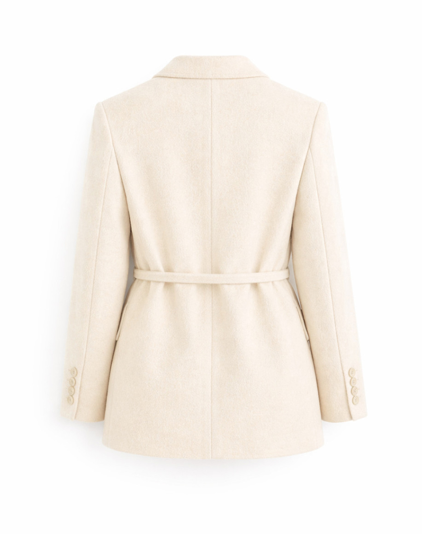 Класика з акцентом на жіночність. Структурований піджак із поясом, який красиво підкреслює талію та формує витончений силует. Лаконічний крій дозволяє носити його як у ділових образах, так і в більш розслаблених поєднаннях із денімом або трикотажем.