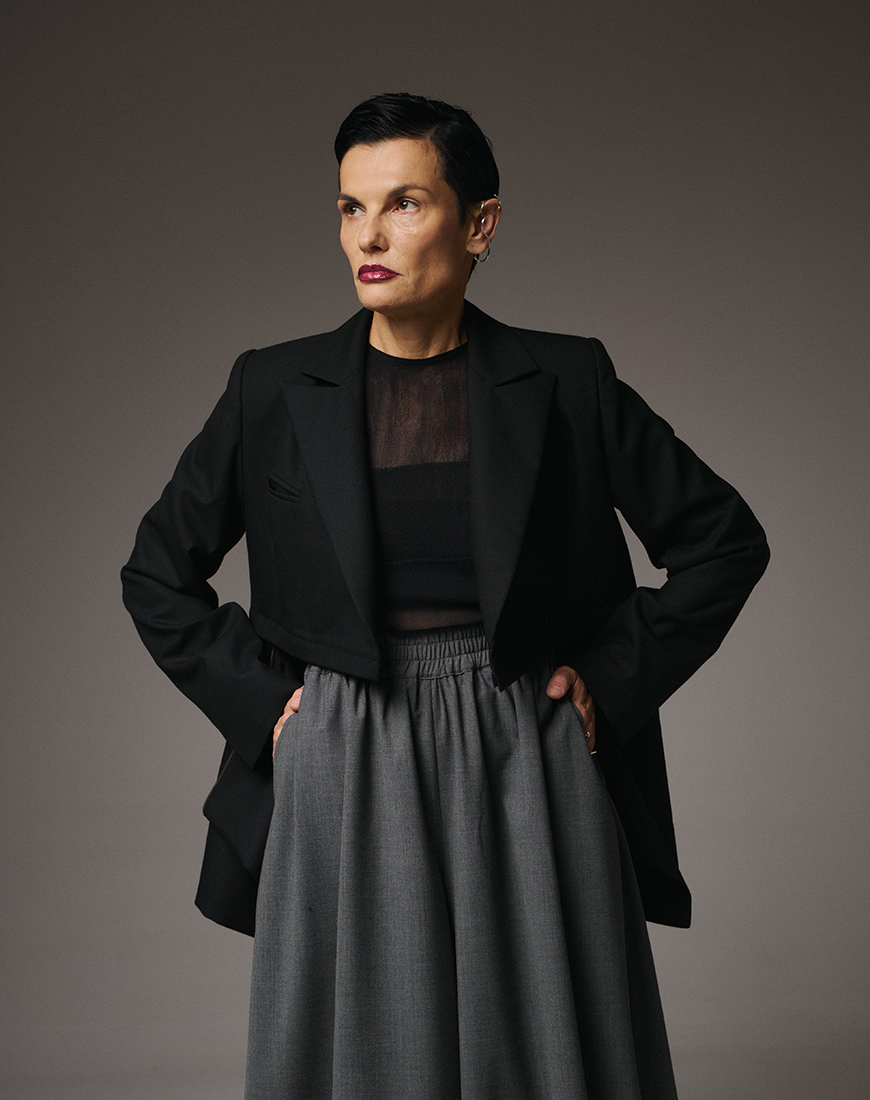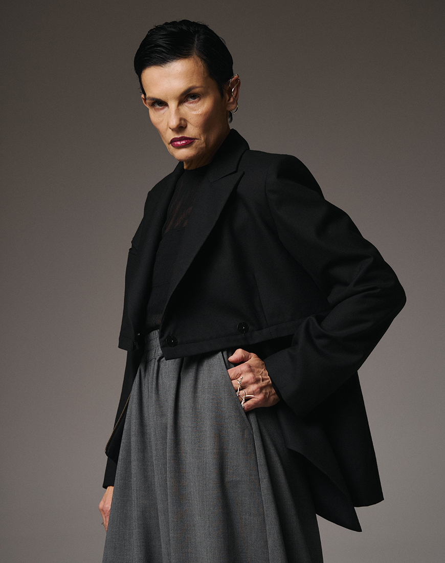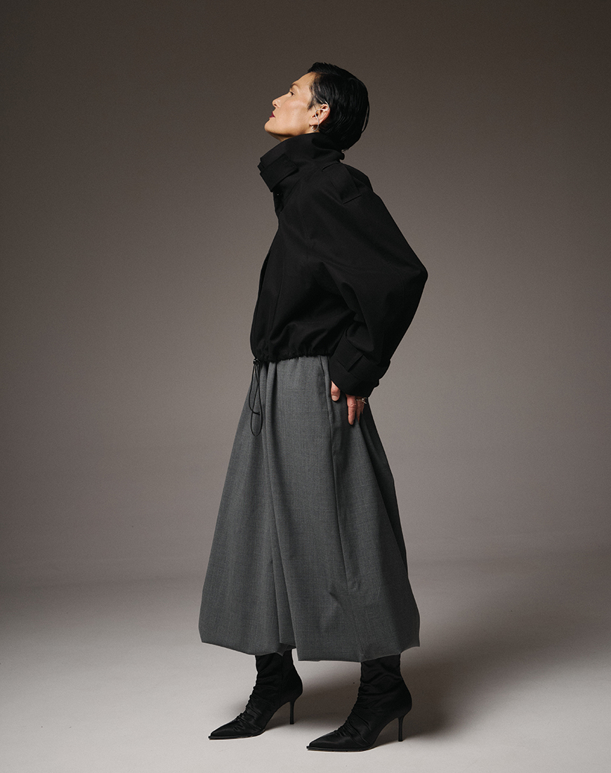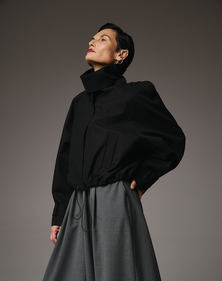 Доставка впродовж 2-14 робочих днівВиконаний з 95% тонкої вовни, він поєднує м’якість і структуру, забезпечуючи легкий драпірувальний силует із точністю архітектурних ліній. Двобортний крій додає вічної елегантності, а інноваційна горизонтальна блискавка дозволяє трансформувати піджак — скорочувати довжину або змінювати форму відповідно до настрою.