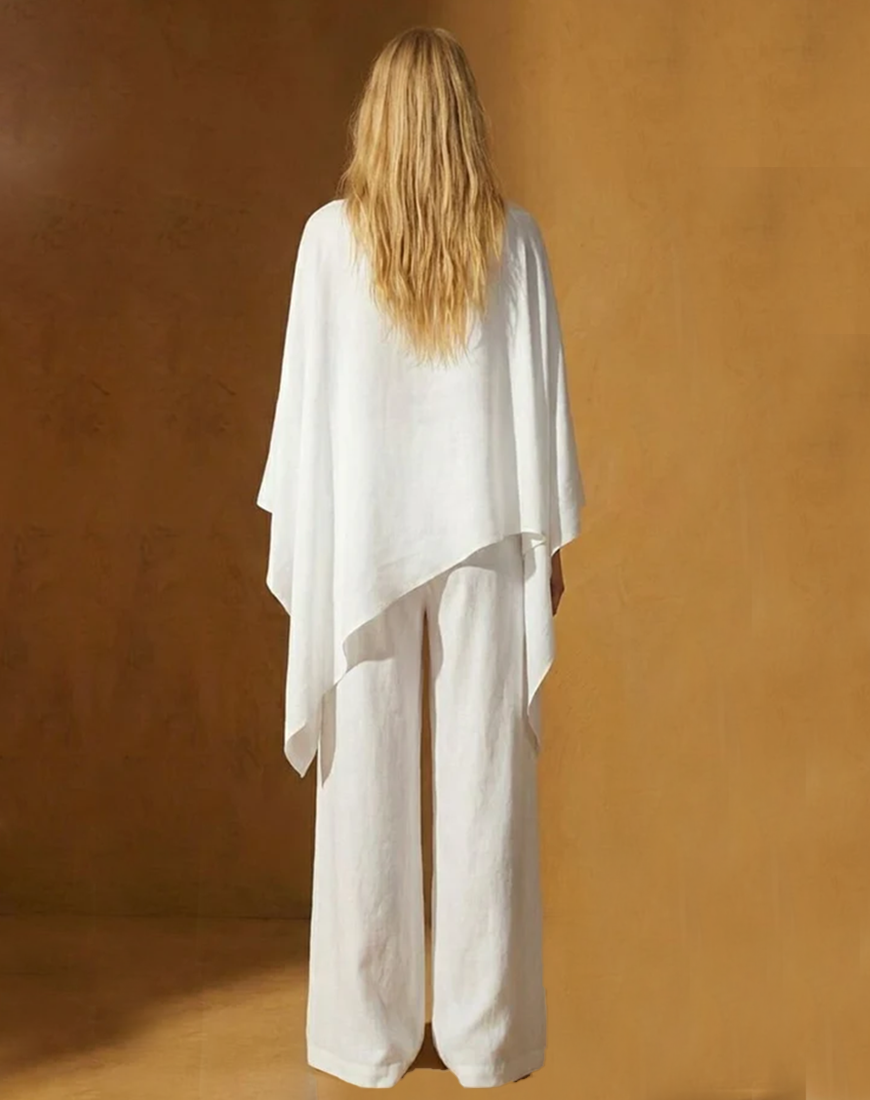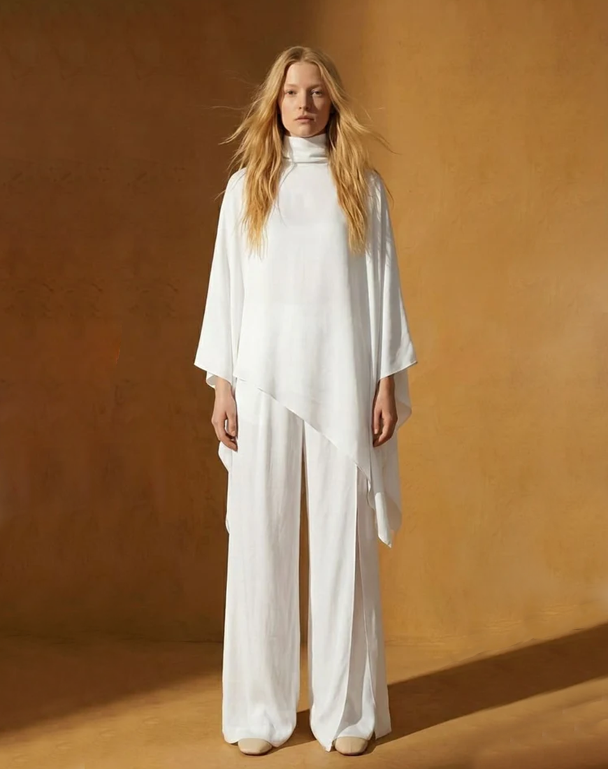 Подовжений силует і м’який рух відображають природну пластику художнього жесту, тоді як лаконічний крій додає відчуття внутрішньої зібраності. Штани легко спадають по фігурі, створюючи відчуття легкості та свободи в кожному русі.