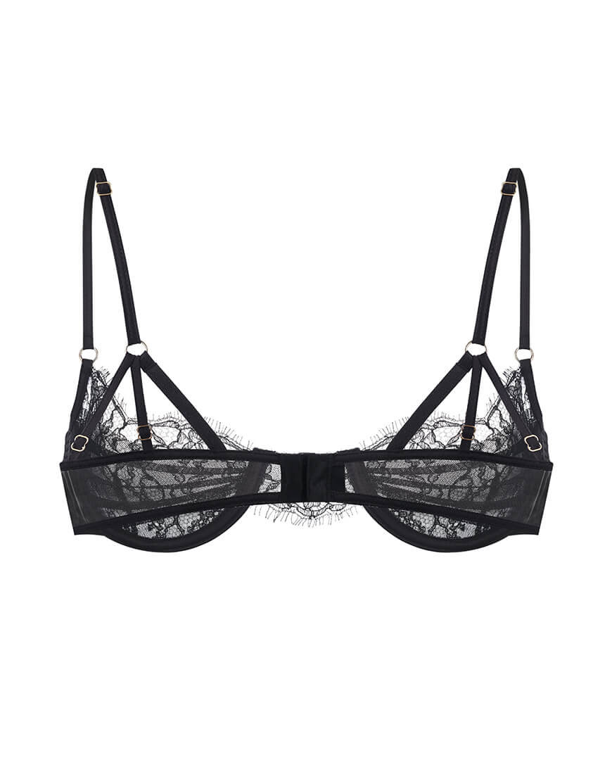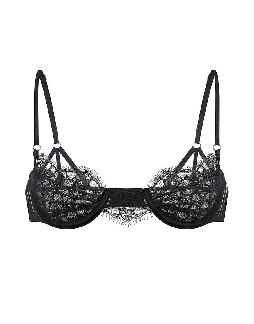 Балконет має класичні чашечки з мереживом і сіткою, виконаний із шовку, французького мережива та сітки. Сексуальні бретельки з трьома деталями на спині.