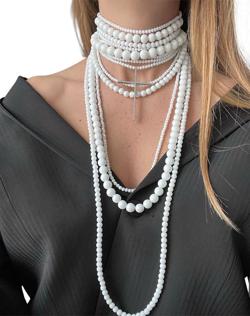Доставка впродовж 2-5 робочих днівЦя елегантна прикраса поєднує класичну символіку та стильний дизайн. Довге намисто виготовлене з білих намистин високої якості, а центральним акцентом є витончений хрест