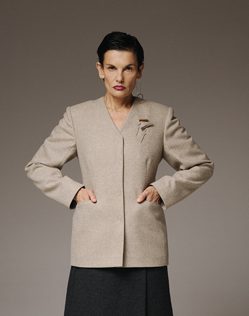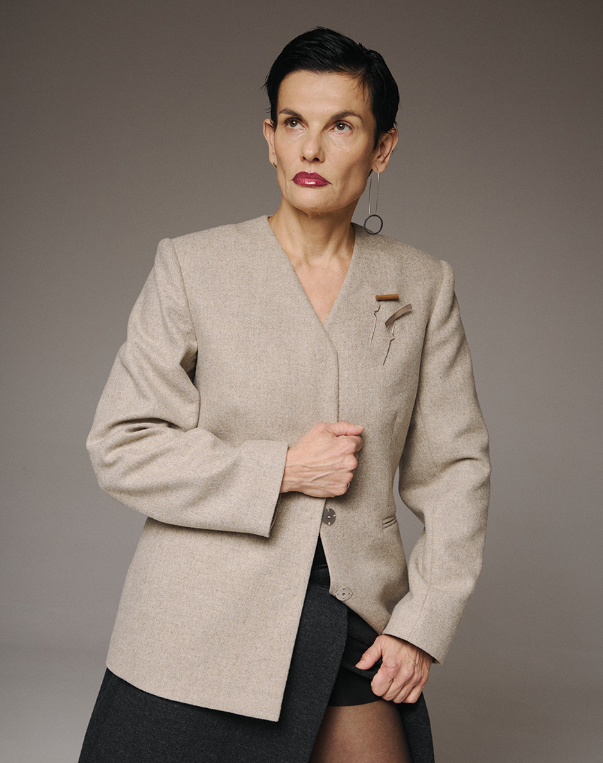Доставка впродовж 2-14 робочих днівВиконаний з щільної 95% тонкої вовни, він забезпечує структурований силует, який гармонійно повторює природні лінії тіла, зберігаючи комфорт і тепло. Без коміра дизайн підкреслює чисту геометрію та вічну вишуканість — сучасну інтерпретацію класичного крою.