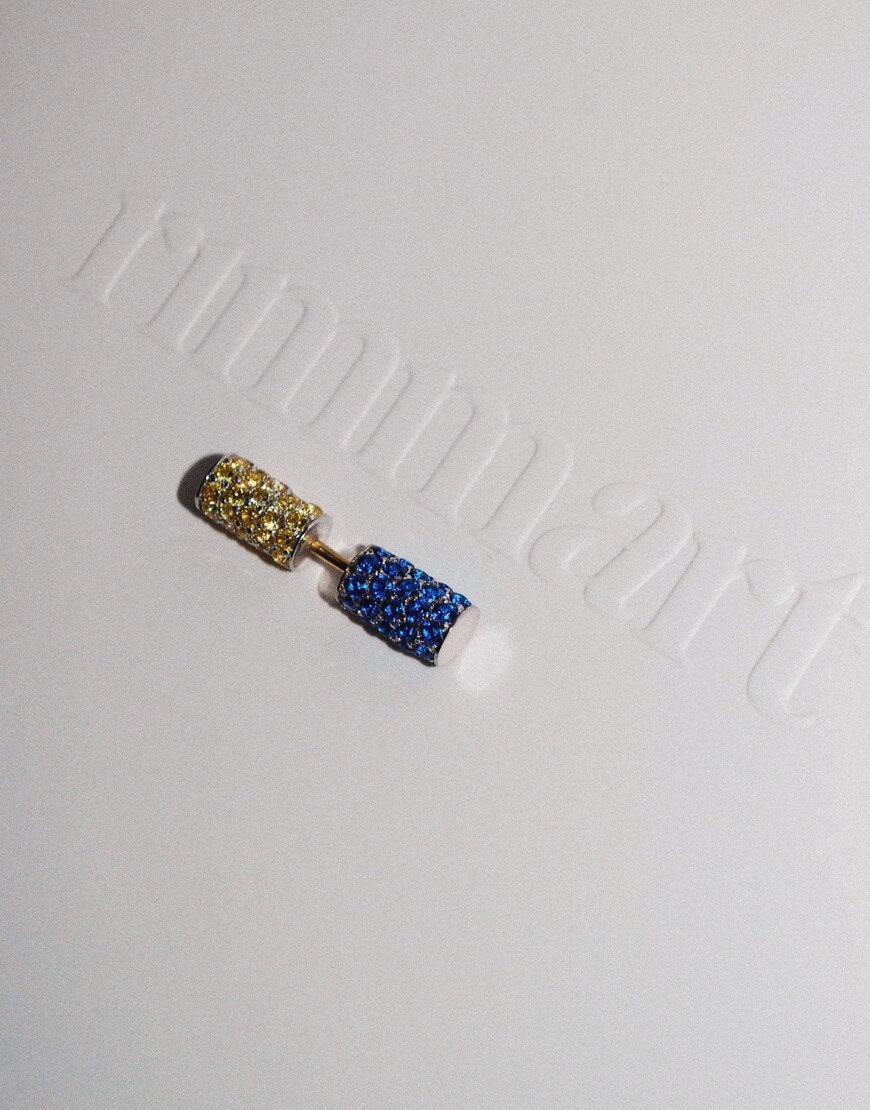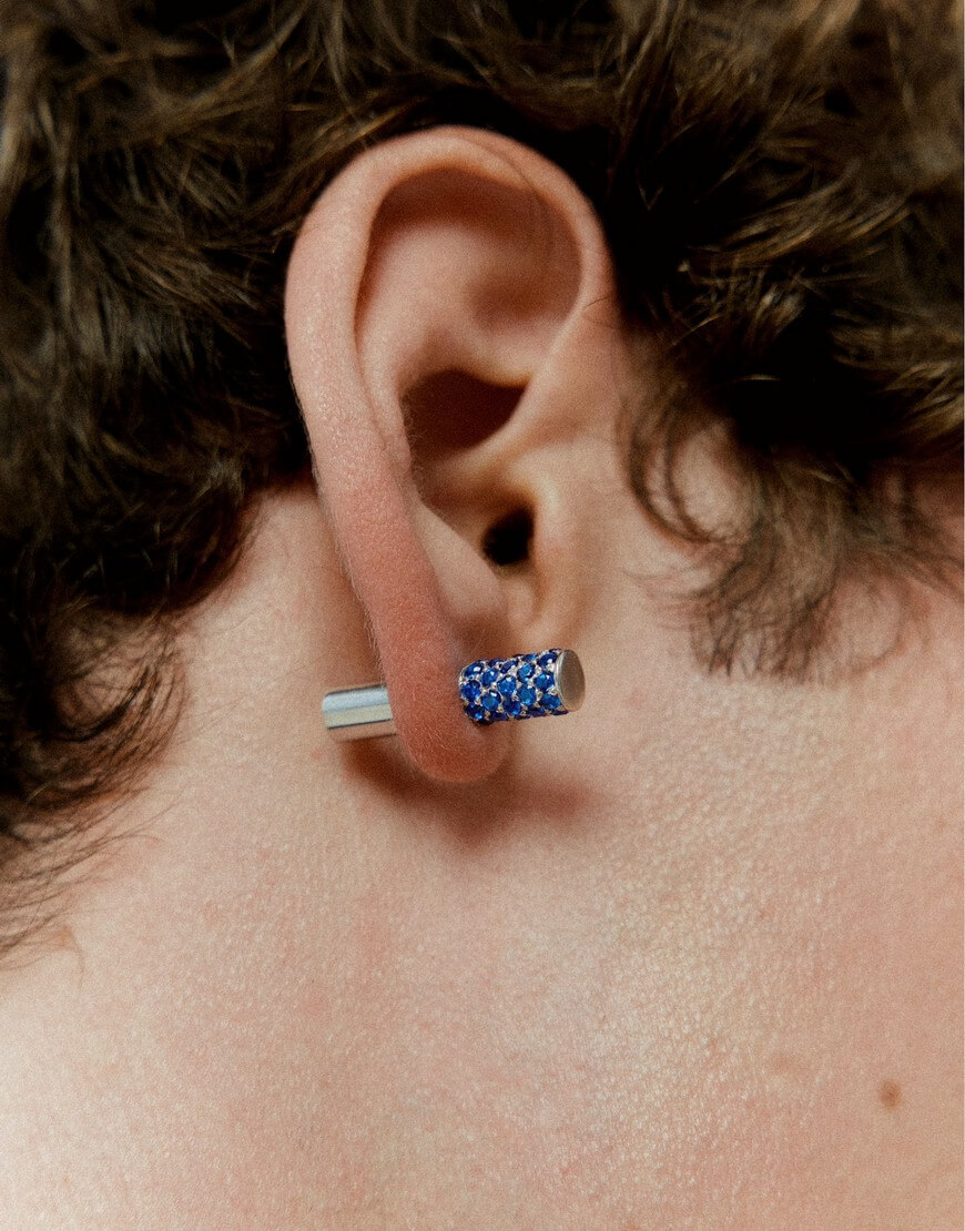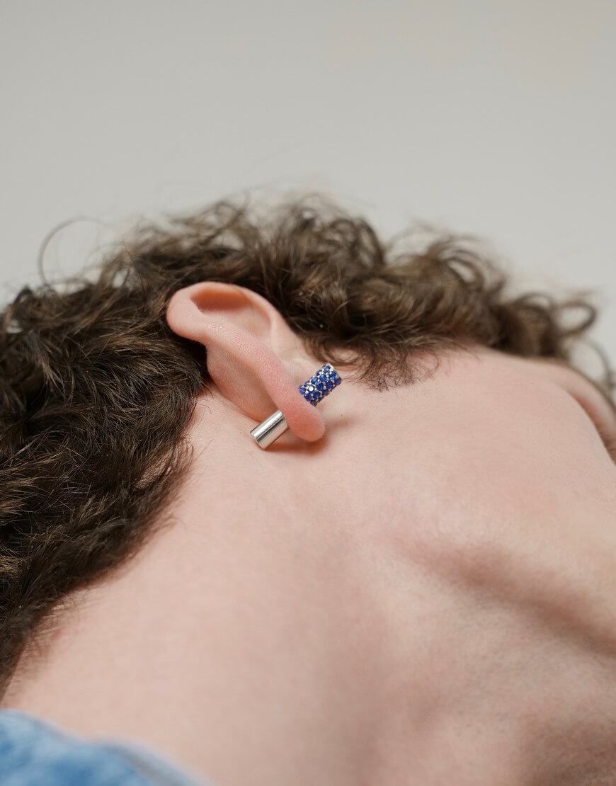 Половина моно-сережки Balance біла з синім камінням