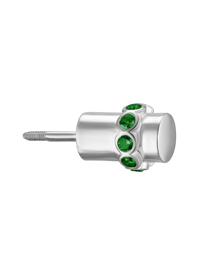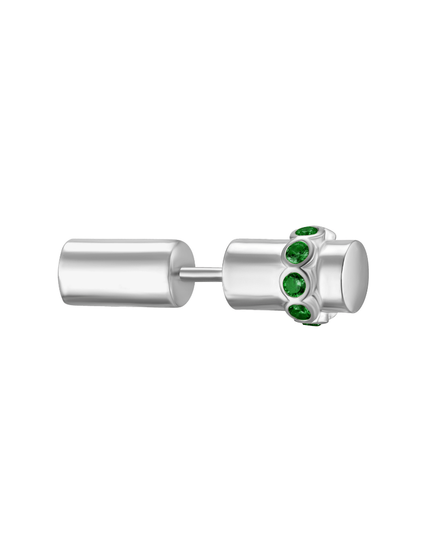 Половина моно-сережки Balance біла із зеленим камінням