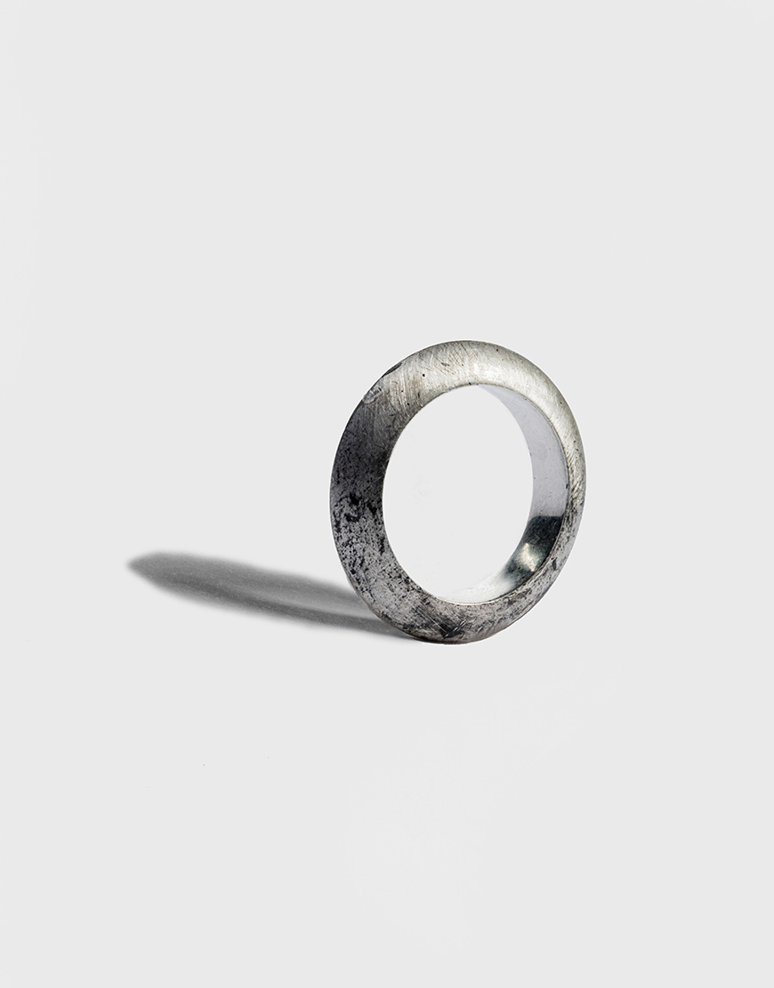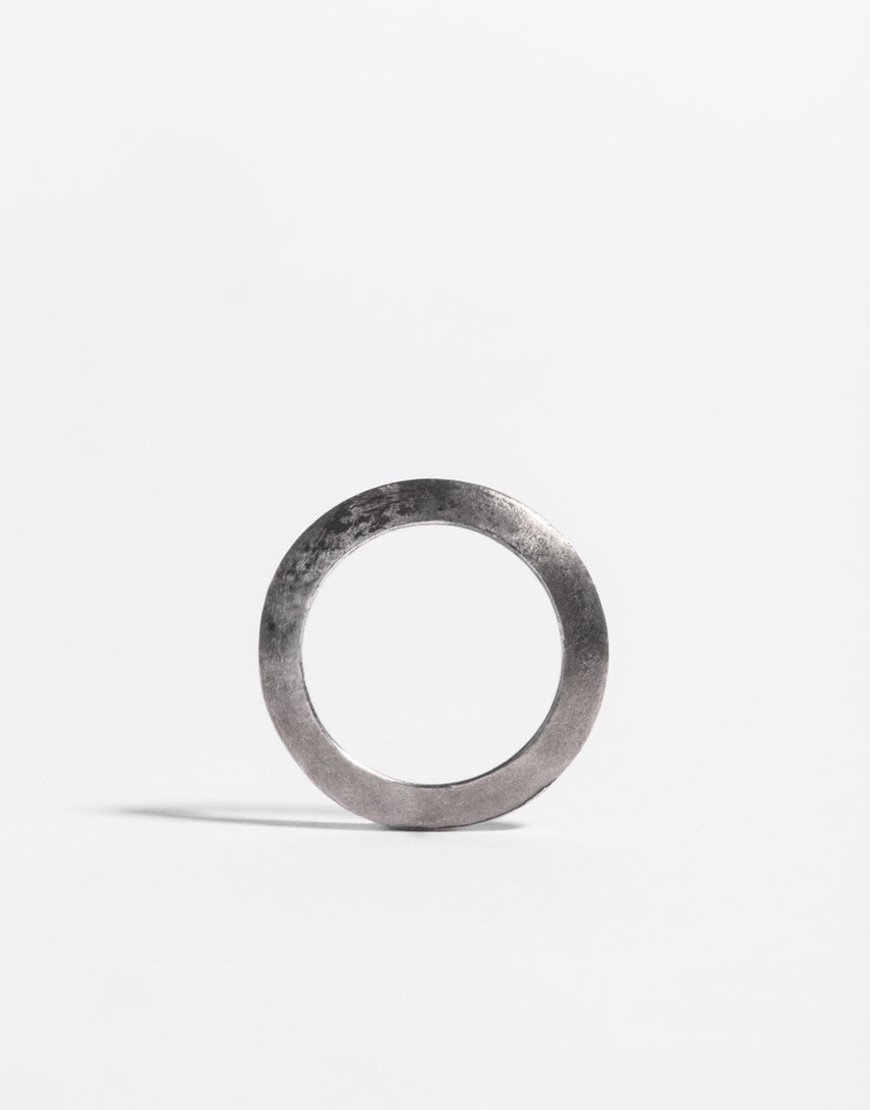 Крупна необроблена матована обручка диск з чорненого 925 срібла, виготовлена власноруч.
