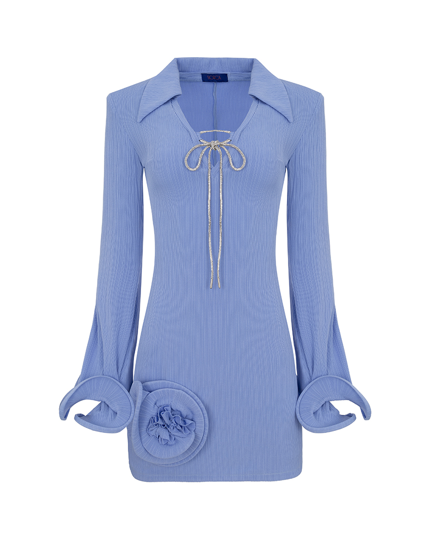 Якщо б естетика Лувру могла перетворитись на одяг — вона виглядала б саме так. Тонка гра текстур, виріз декольте,який регулюється на зав’язці , квітка, що розквітла на подолі, — все говорить про внутрішню свободу і чуттєву жіночність. Це сукня для жінки, яка не просто іде — вона залишає за собою історію.